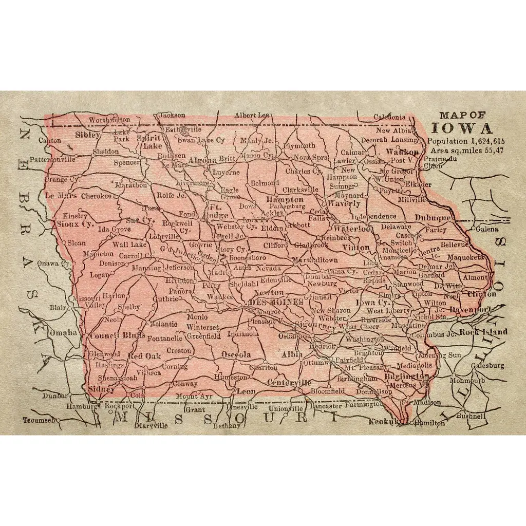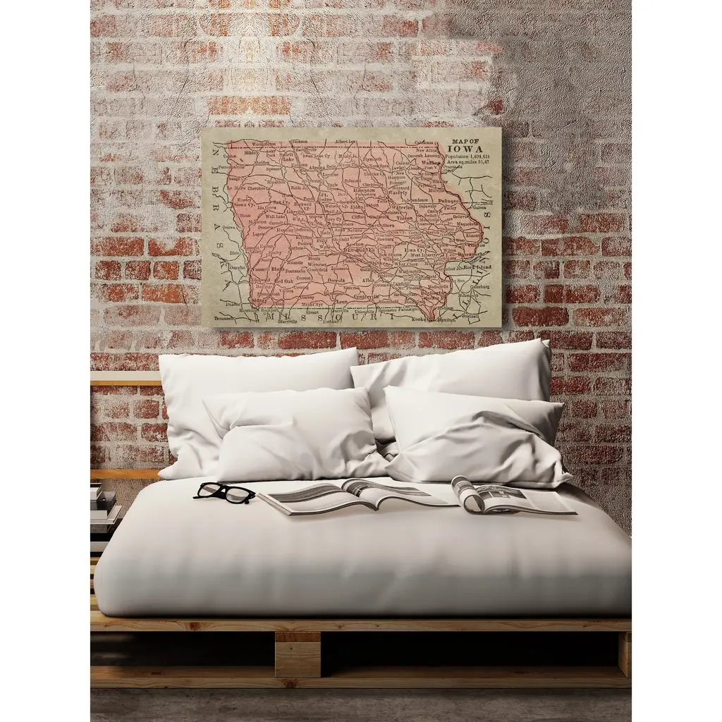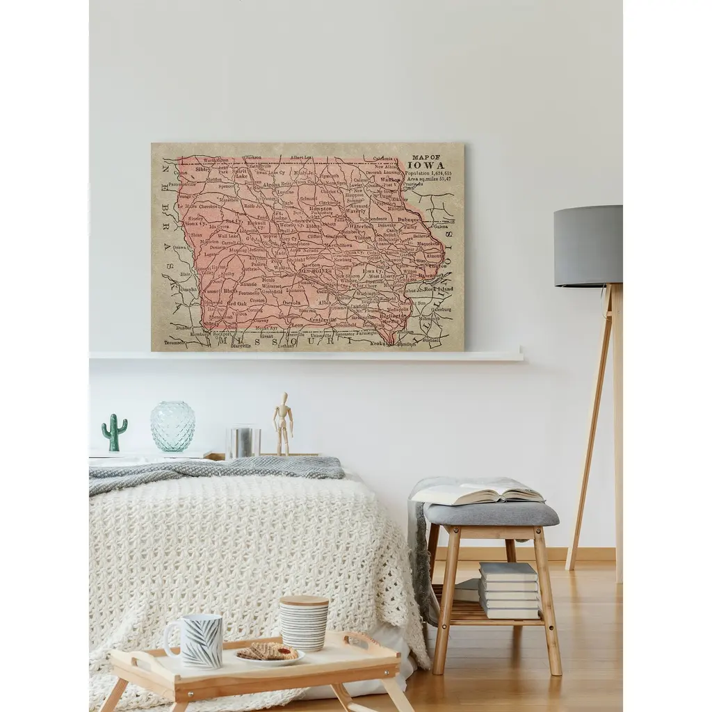 'Map Of Iowa' Painting Print On Wrapped Canvas - 30 X 20