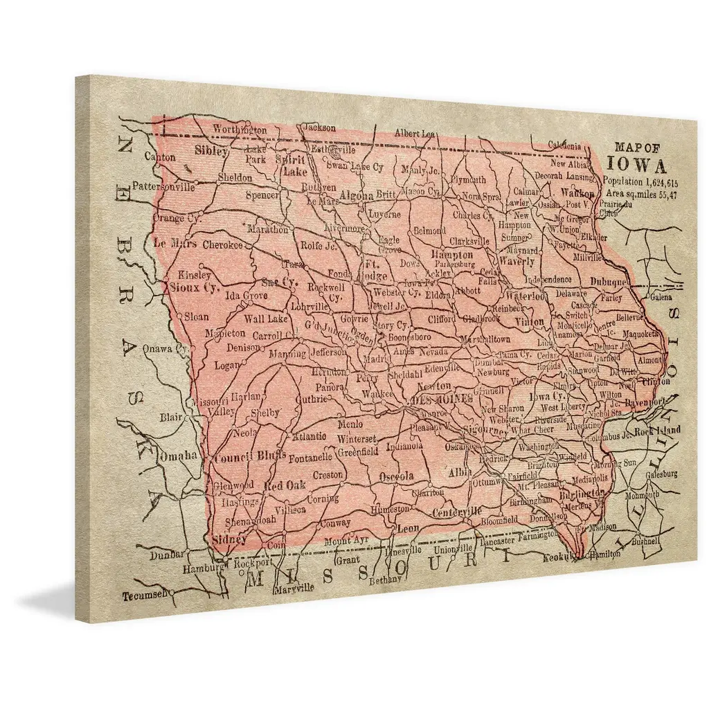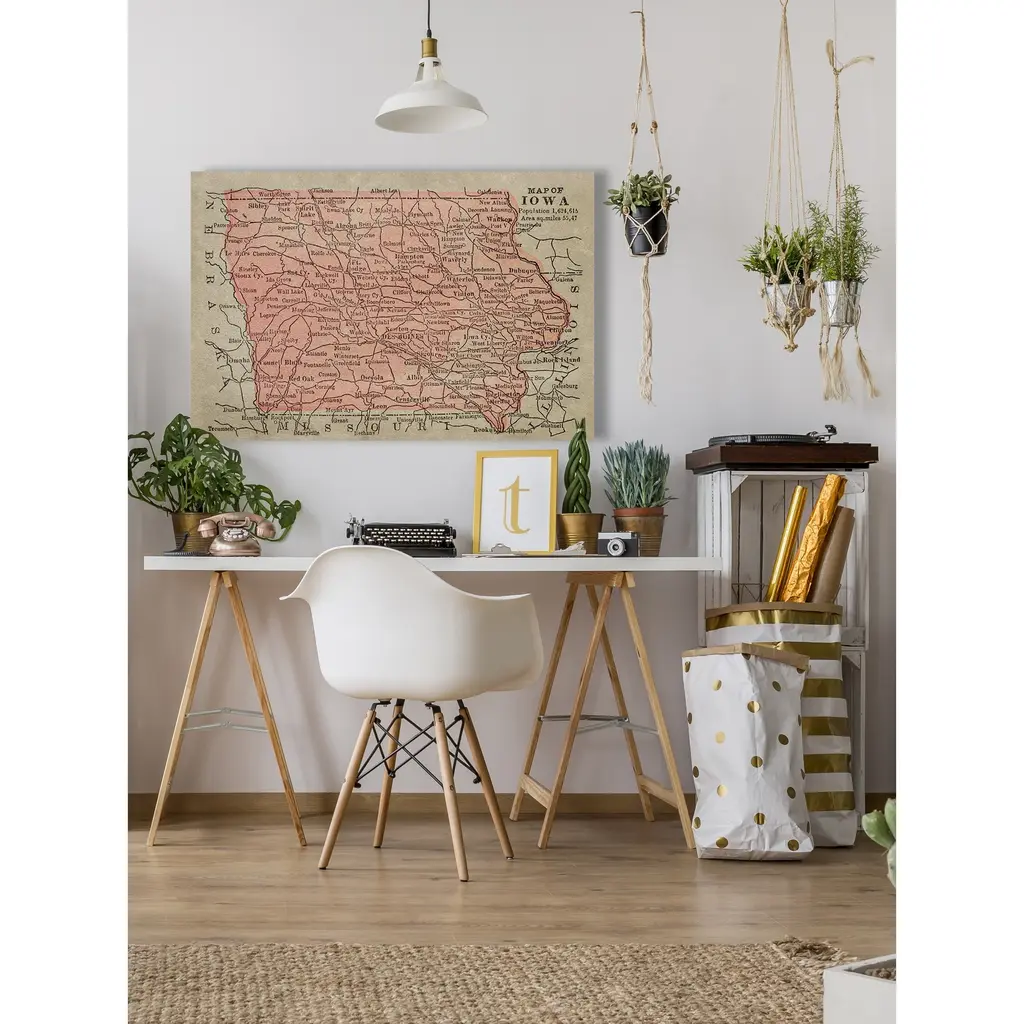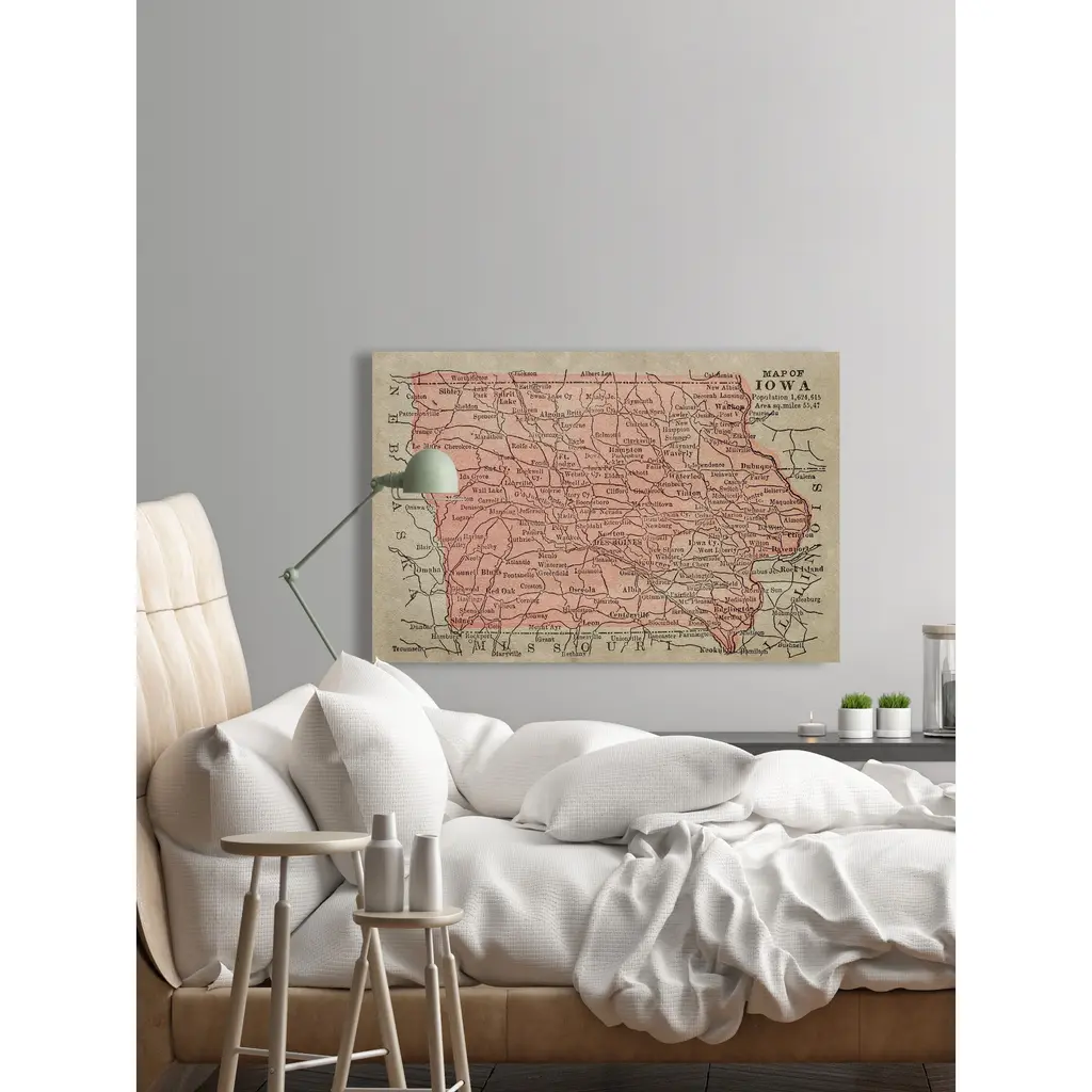 This muted map of Iowa features each town, road, and river within the state with great detail. Proudly made in the USA, this piece is printed on canvas before it's stretched over non-warping wooden bars for a gallery-wrapped look. With wall-mounting hooks included, this artful accent is ready to hang up as soon as it reaches your front door. • Fine art canvas print from the Marmont Hill Art Collective • Professionally hand stretched • Gallery wrapped in sustainable, non-warping wood • Arrives ready to hang • Made in the USA • Includes a certificate of authenticity