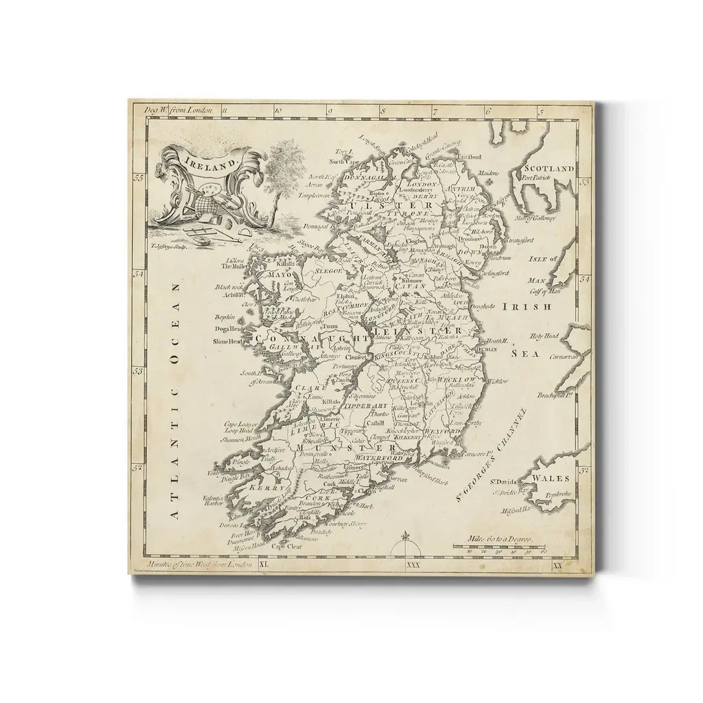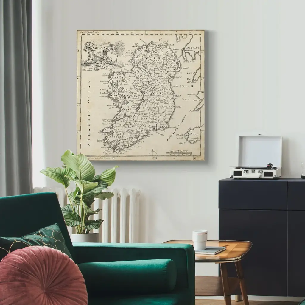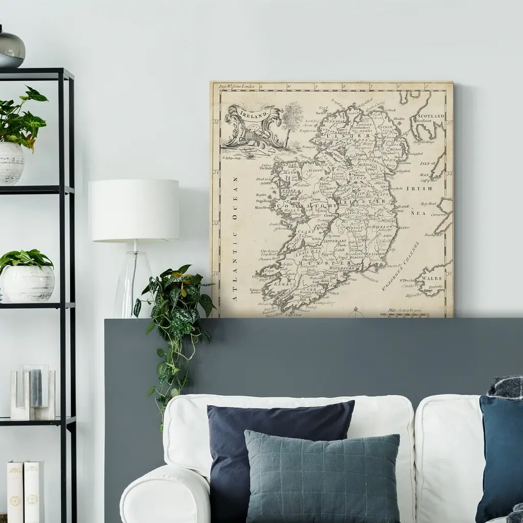 Map of Ireland -Premium Gallery Wrapped Canvas - Ready to Hang A premium hand stretched gallery wrapped canvas print created to last. Featuring a beveled a solid wood stretcher bar, each piece comes ready to hand 4 SIZES AVILABLE 10''X10'' - Overall Size 16''x16'' - Overall Size 24''x24'' - Overall Size 32''x32'' - Overall Size 40''x40'' - Overall Size Each piece is made to order. Built to Last Each piece comes ready to hang Solid wood strecher Fade and Water resitant Made domestically