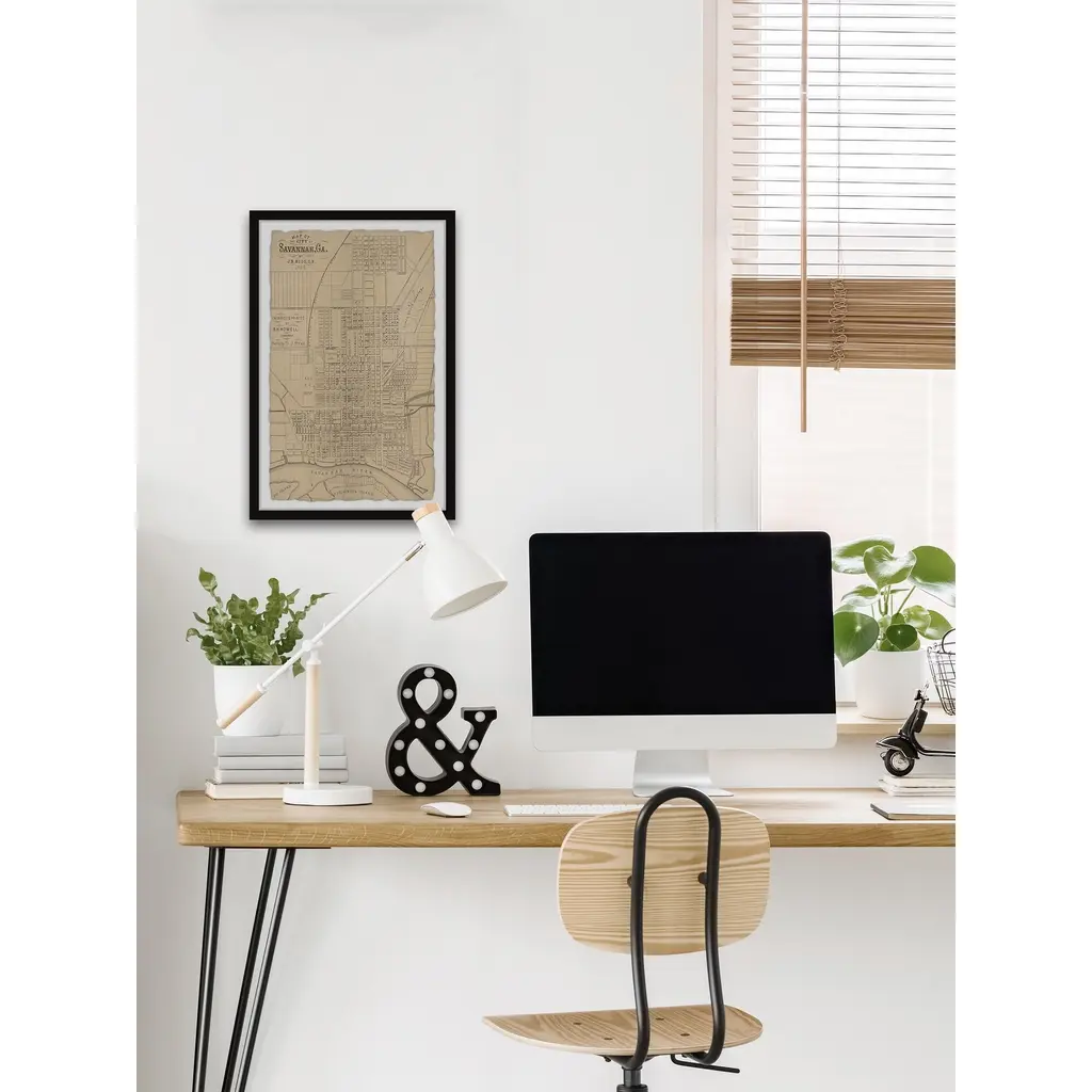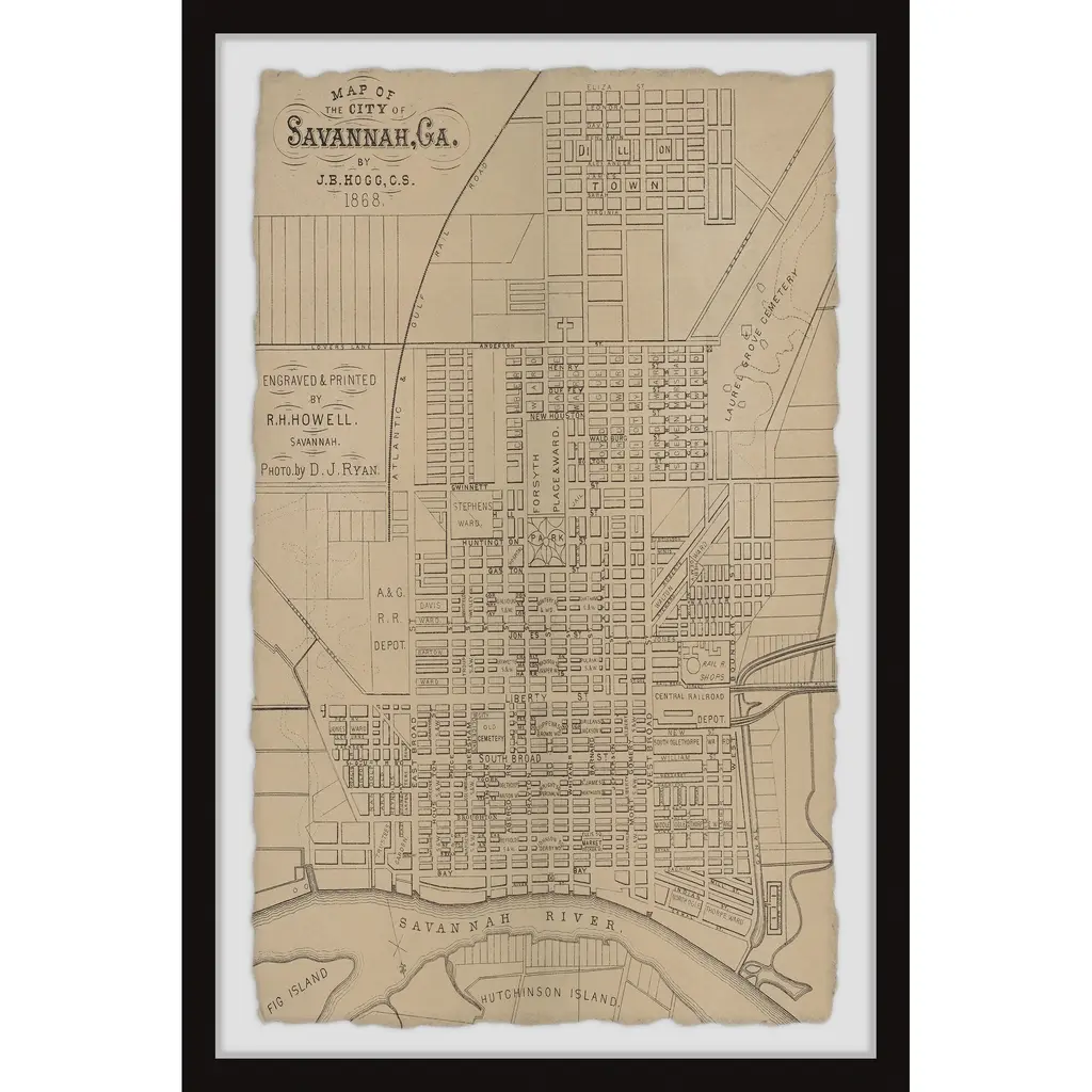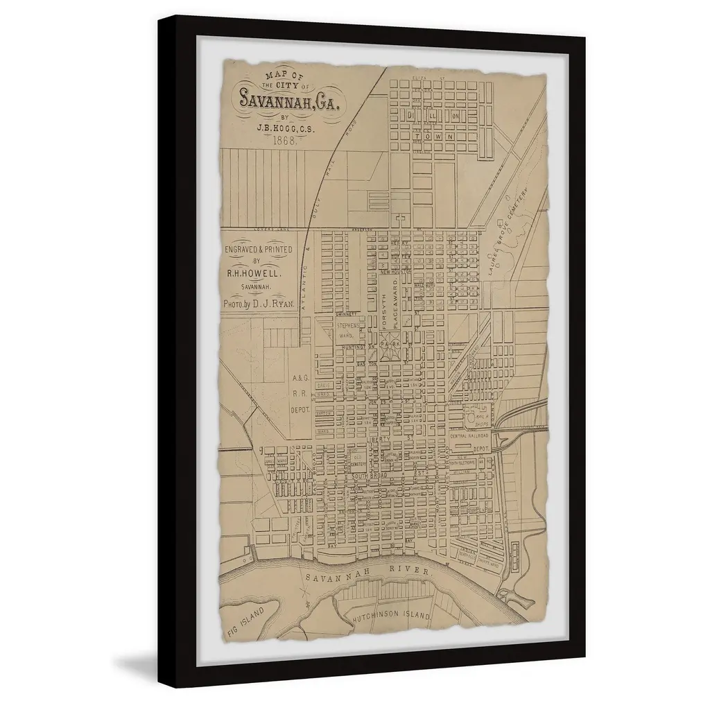 'Map Of The City Of Savannah, Georgia' Framed Painting Print - 24 X 36