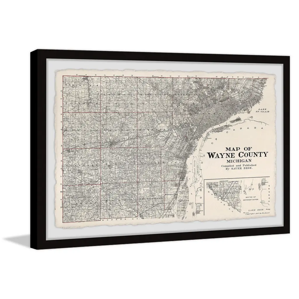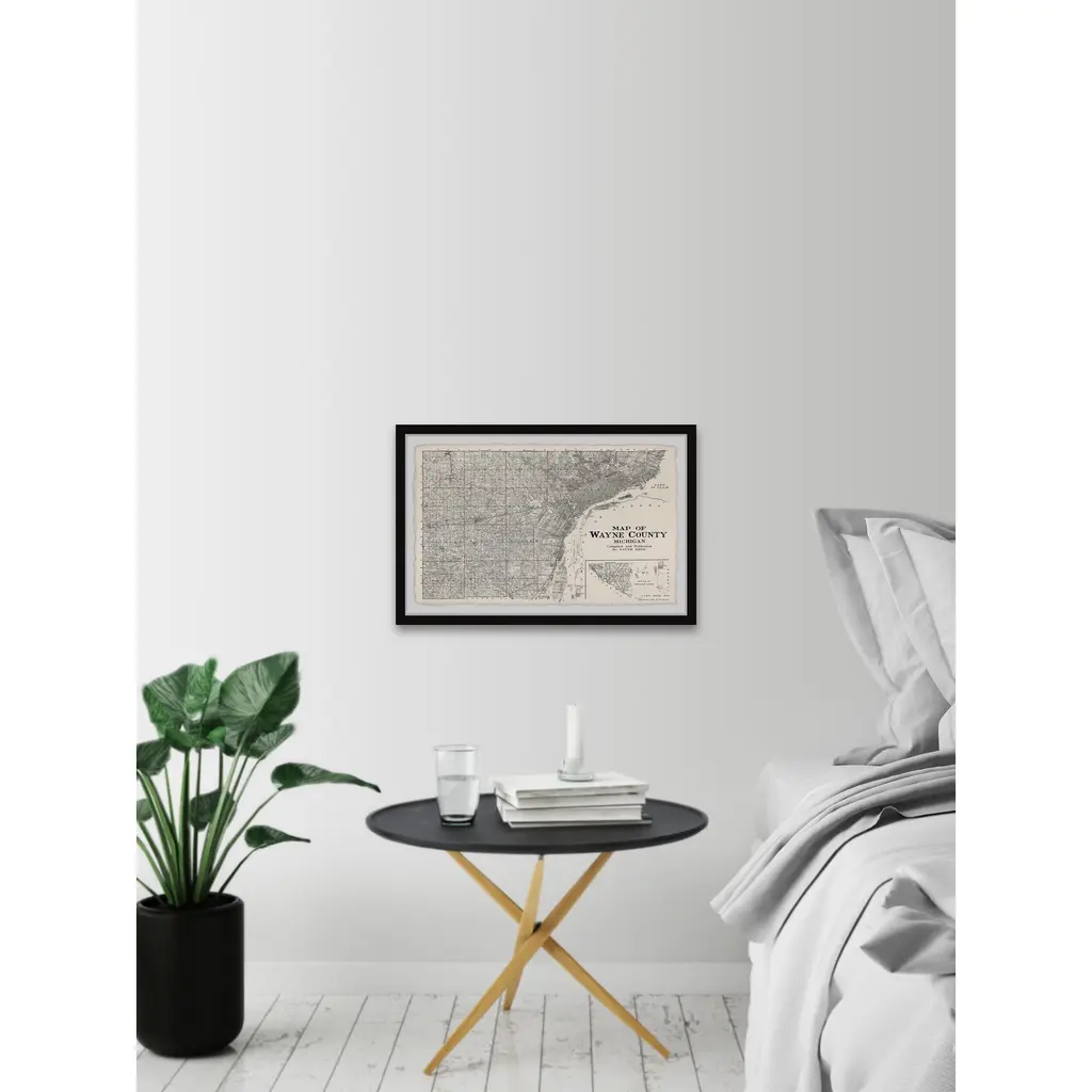 'Map Of Wayne County, Michigan' Framed Painting Print - 24 X 16