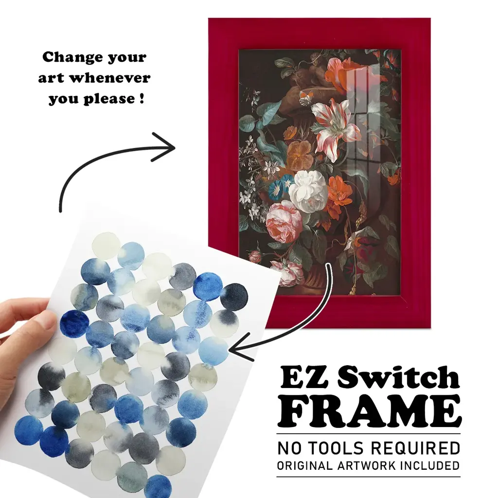 Maple Drops I -EZ SWITCH Framed Print w/glass-Cherry Red A delightful, framed print. Featuring a solid wood frame with real wood glass. This premium print is giclee quality. In addition, every frame features a removable back and table top stand. This allows you to change your art in the future or to just stand the art on a table for a new look. We are sure you'll enjoy our new series of EZ SWITCH Framed Art. Solid Wood Frame Real Glass Removable / Replaceable Art Built in Tabletop Stand Sizes range from 4x6 up to 12x15 - buy just one or pair them up as sets as you see fit.