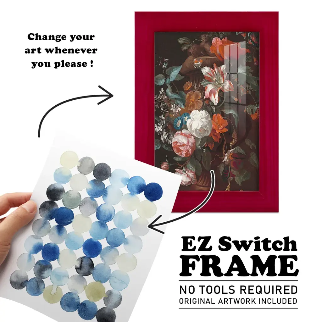 Maple Drops II -EZ SWITCH Framed Print w/glass-Cherry Red A delightful, framed print. Featuring a solid wood frame with real wood glass. This premium print is giclee quality. In addition, every frame features a removable back and table top stand. This allows you to change your art in the future or to just stand the art on a table for a new look. We are sure you'll enjoy our new series of EZ SWITCH Framed Art. Solid Wood Frame Real Glass Removable / Replaceable Art Built in Tabletop Stand Sizes range from 4x6 up to 12x15 - buy just one or pair them up as sets as you see fit.