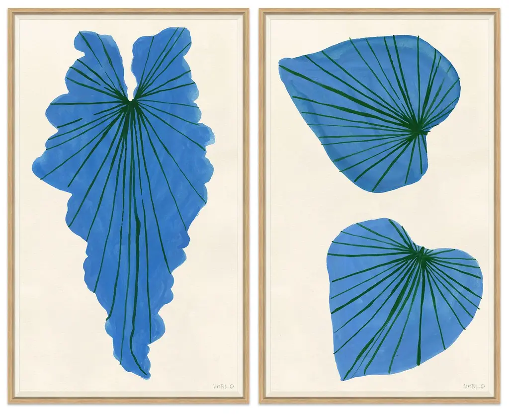 Maple Leaf Elm Stem Vintage Blue White Illustration,2pc, Each 16 X 20