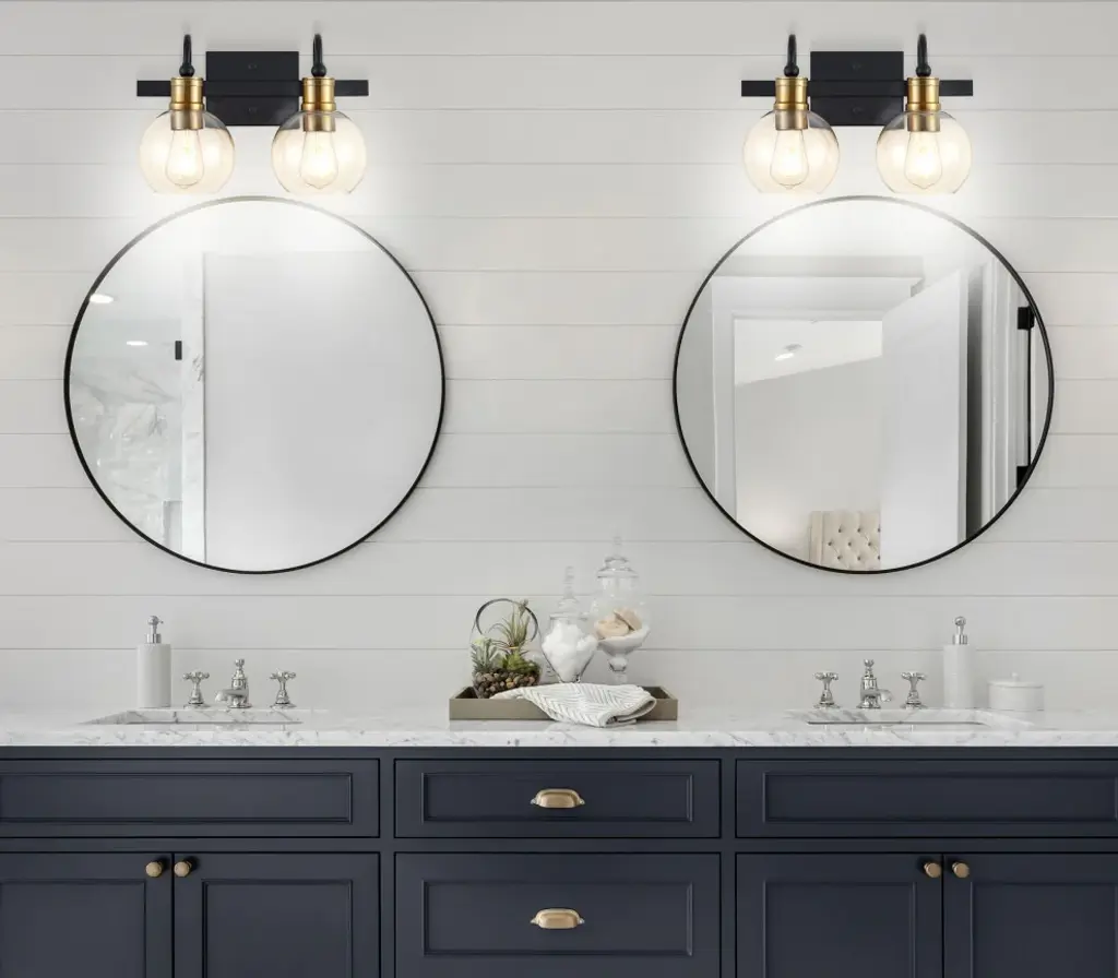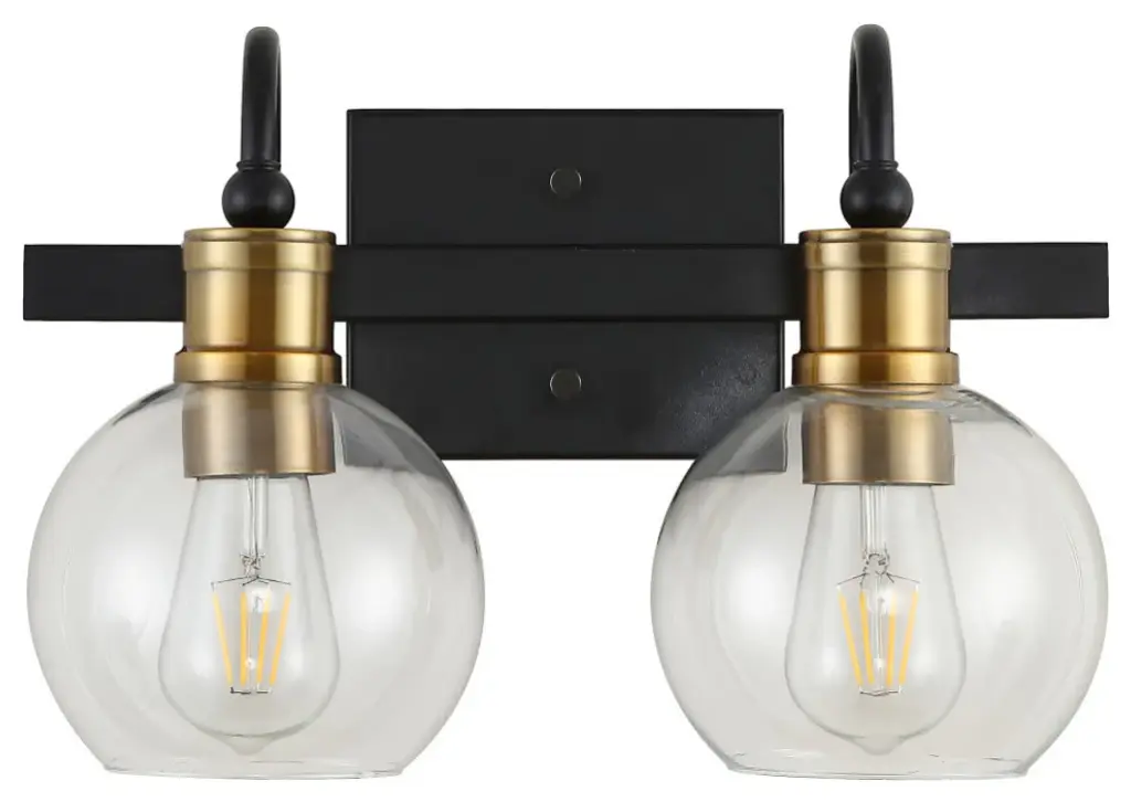 Marais Iron Led Vanity Light, Black/gold, 2 Bulb