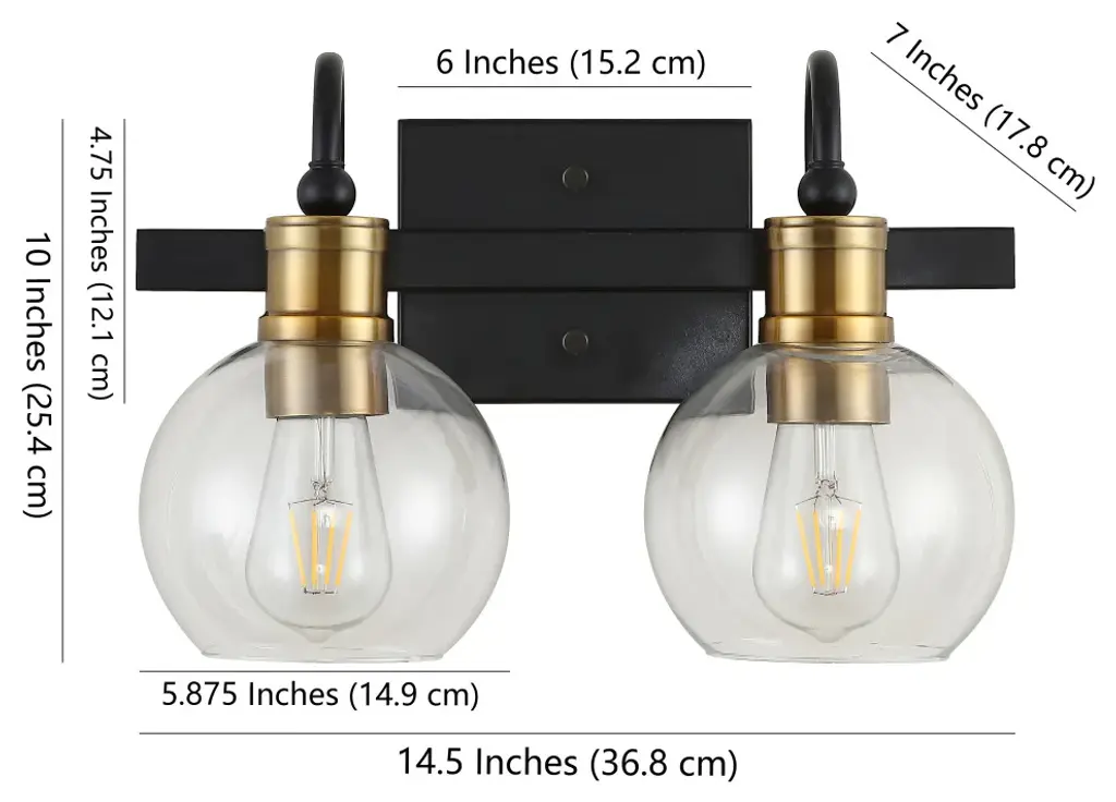 Bring on the vintage Parisian flair with our arched wall light. Two Edison-style LED bulbs cast a warm glow. Brass accents and a clear glass globe add French bistro style to your bath vanity, kitchen, hallway or entry. -A visible Edison bulb creates soft, warm lighting, while the clear glass globe adds a vintage touch-Our light fixtures work with LED-compatible dimmers; professional installation is recommended.-Takes 2 bulbs and compatible with any 9W LED or 40W TYPE "A"or 13W CFL-Eco-Friendly 4W LED Bulb included-As this fixture must be hardwired, we recommend a professional electrician manage installationColor: Black/Brass Gold with clear shade-Body Material: Iron/Glass-Includes: One (1) lampAssembly RequiredLamp: 10 inches high x 14.5 inches wide x 7 inches deepAbout us: You see a lamp.We see a decorative work of art.A perfectly curved shade casts a dramatic shadow on a floor. Compatible with LED lightbulbs: as easy on the environment as they are on the eyes. The JONATHAN Y Lighting collection considers every detail from impeccably sourced materials to designer styling. And our prices are so attractive, we�ve transformed a functional necessity into a fashion accessory.JONATHAN Y Lighting - a fashion revolution in home decor.