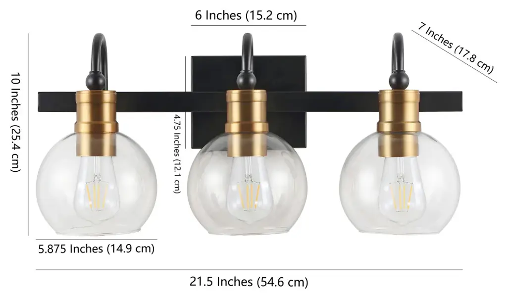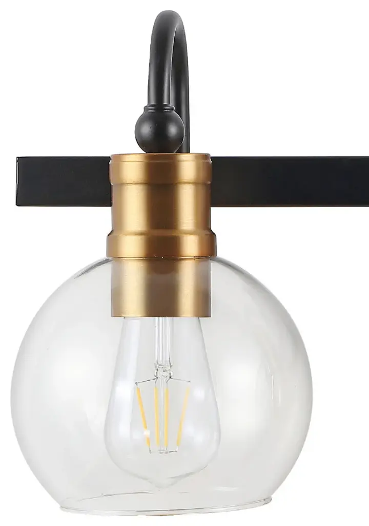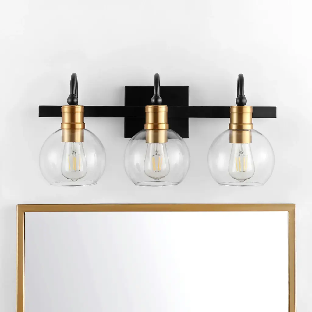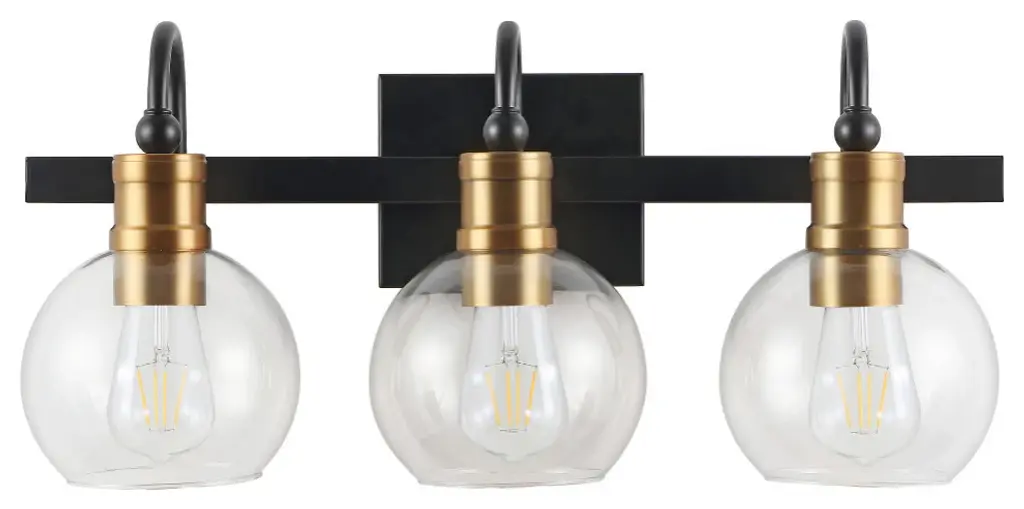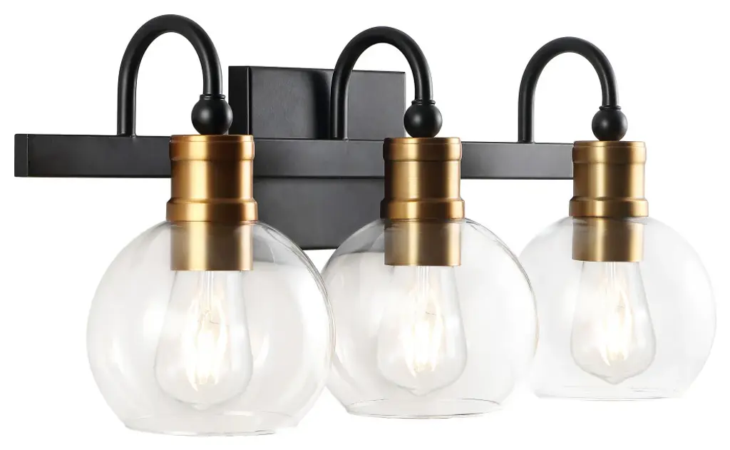 Bring on the vintage Parisian flair with our arched wall light. Three Edison-style LED bulbs cast a warm glow. Brass accents and a clear glass globe add French bistro style to your bath vanity, kitchen, hallway or entry. -A visible Edison bulb creates soft, warm lighting, while the clear glass globe adds a vintage touch-Our light fixtures work with LED-compatible dimmers; professional installation is recommended.-Takes 3 bulbs and compatible with any 9W LED or 40W TYPE "A"or 13W CFL-Eco-Friendly 4W LED Bulb included-As this fixture must be hardwired, we recommend a professional electrician manage installationColor: Black/Brass Gold with clear shade-Body Material: Iron/Glass-Includes: One (1) lampAssembly RequiredLamp: 10 inches high x 21.5 inches wide x 7 inches deepAbout us: You see a lamp.We see a decorative work of art.A perfectly curved shade casts a dramatic shadow on a floor. Compatible with LED lightbulbs: as easy on the environment as they are on the eyes. The JONATHAN Y Lighting collection considers every detail from impeccably sourced materials to designer styling. And our prices are so attractive, we�ve transformed a functional necessity into a fashion accessory.JONATHAN Y Lighting - a fashion revolution in home decor.