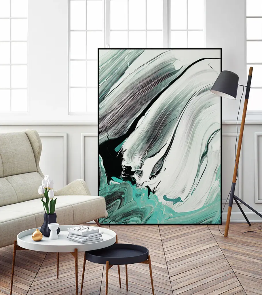 Your ready to hang artwork is printed on canvas then stretched and mounted to a 2-inch thick - hand stained black wood frame. Arrives at your door complete with an easy to use self-leveling hangking kit.
