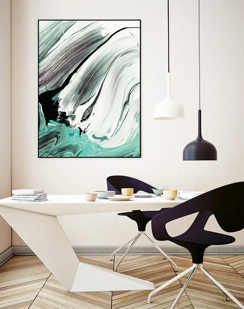 Your ready to hang artwork is printed on canvas then stretched and mounted to a 2-inch thick - hand stained black wood frame. Arrives at your door complete with an easy to use self-leveling hangking kit.