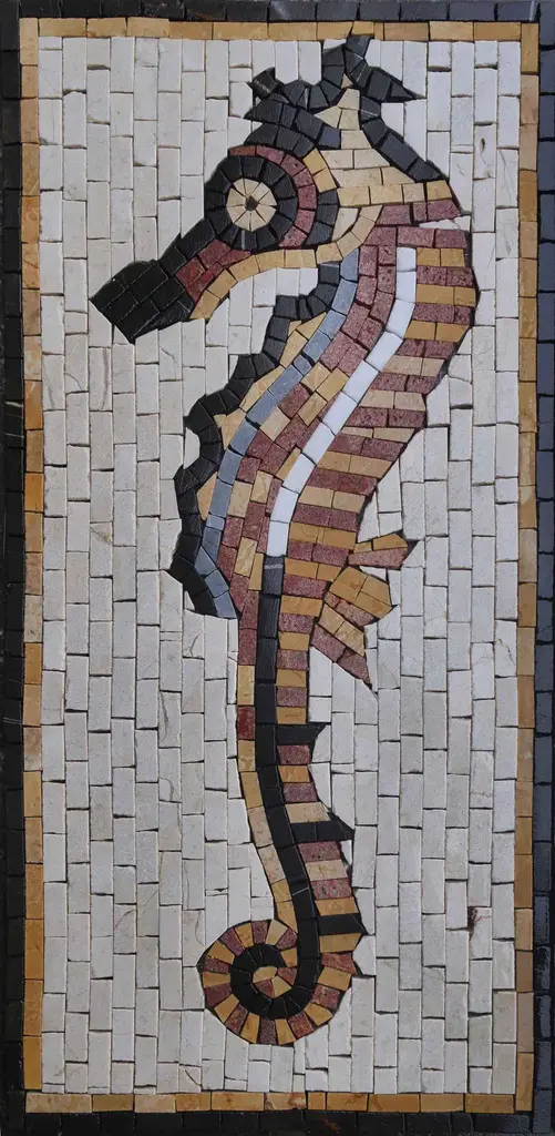 Introducing the Marble Seahorse Mosaic - Ambient Seahorse, a stunning handcrafted masterpiece designed to bring elegance and charm to your space. This exquisite mosaic art piece features an adorable seahorse, carefully created with intricate detailing that captures the essence of marine beauty. The warm tones of the marble exude a sense of tranquility, making it the perfect addition to elevate the ambiance of your bathroom or any area in your home.Crafted with meticulous attention to detail, each Marble Seahorse Mosaic is unique, ensuring that your decor stands out with its distinctive artistry. The gentle curves and flowing lines of the seahorse create a sense of movement, inviting the serenity of the ocean into your living environment. Not only does this mosaic serve as a breathtaking focal point, but its durable marble construction ensures it will remain a cherished addition to your decor for years to come. Whether you’re enhancing your bathroom’s aesthetic or searching for a thoughtful gift for a loved one, the Marble Seahorse Mosaic - Ambient Seahorse is a delightful choice that brings both beauty and personality.Transform your home into a coastal haven today with the enchanting Marble Seahorse Mosaic. Embrace the beauty of the ocean and let this captivating piece inspire a sense of calm and relaxation in your daily routine.
