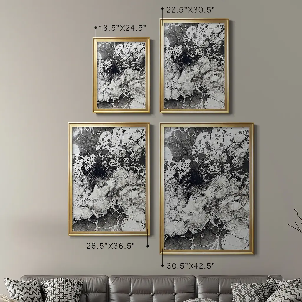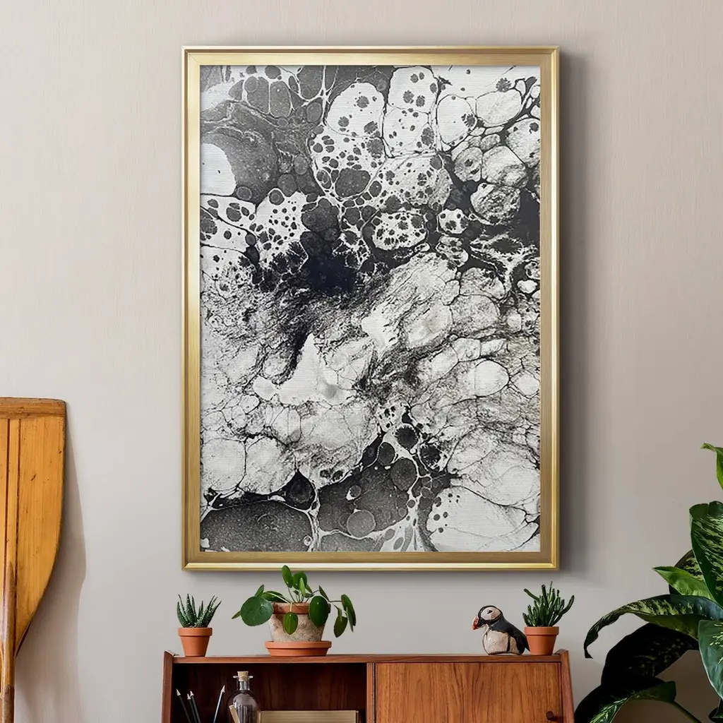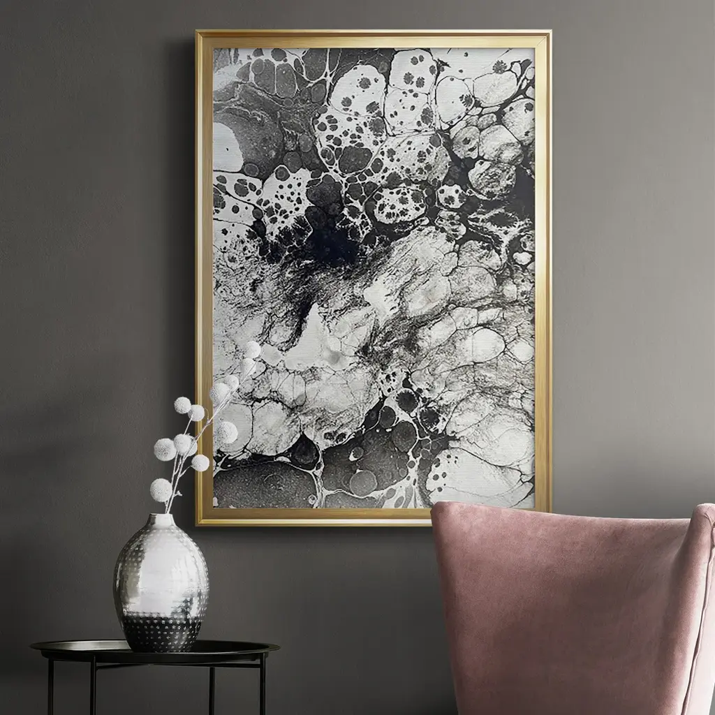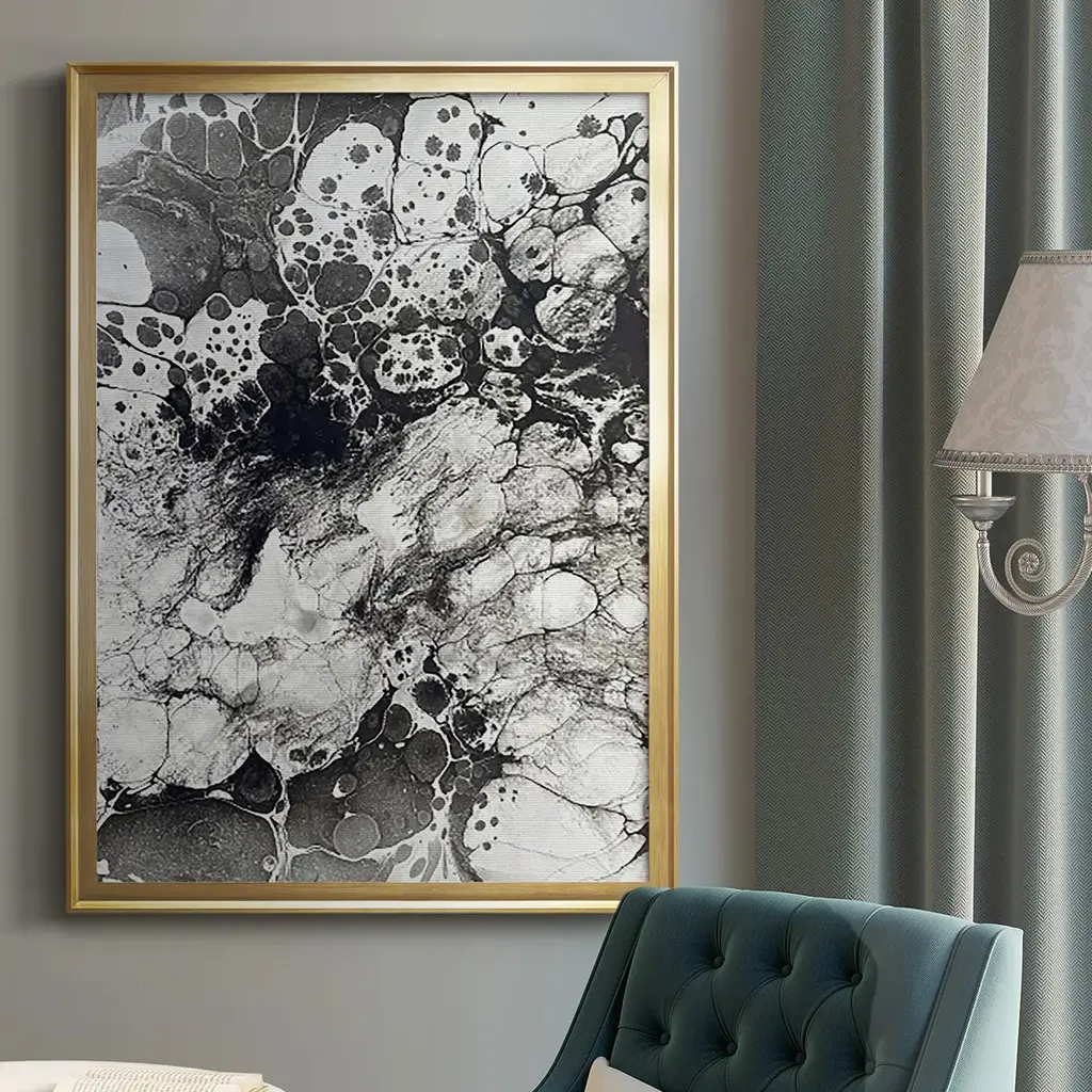 Marbling IX Premium Framed Print - Ready to Hang A Premium Framed Print created to last. Framed in distressed wood and available in an array of sizes and colors Featuring a beveled a solid wood stretcher bar, each piece comes ready to hand 4 SIZES AVAILABLE 30.5''X42.5'' - Overall Size 26.5'X36.5'' - Overall Size 22.5''x30.5'' - Overall Size 18.5''x24.5'' - Overall Size Each piece is made to order. Each piece comes with hanging hardware. Made in the USA Ready to Hang