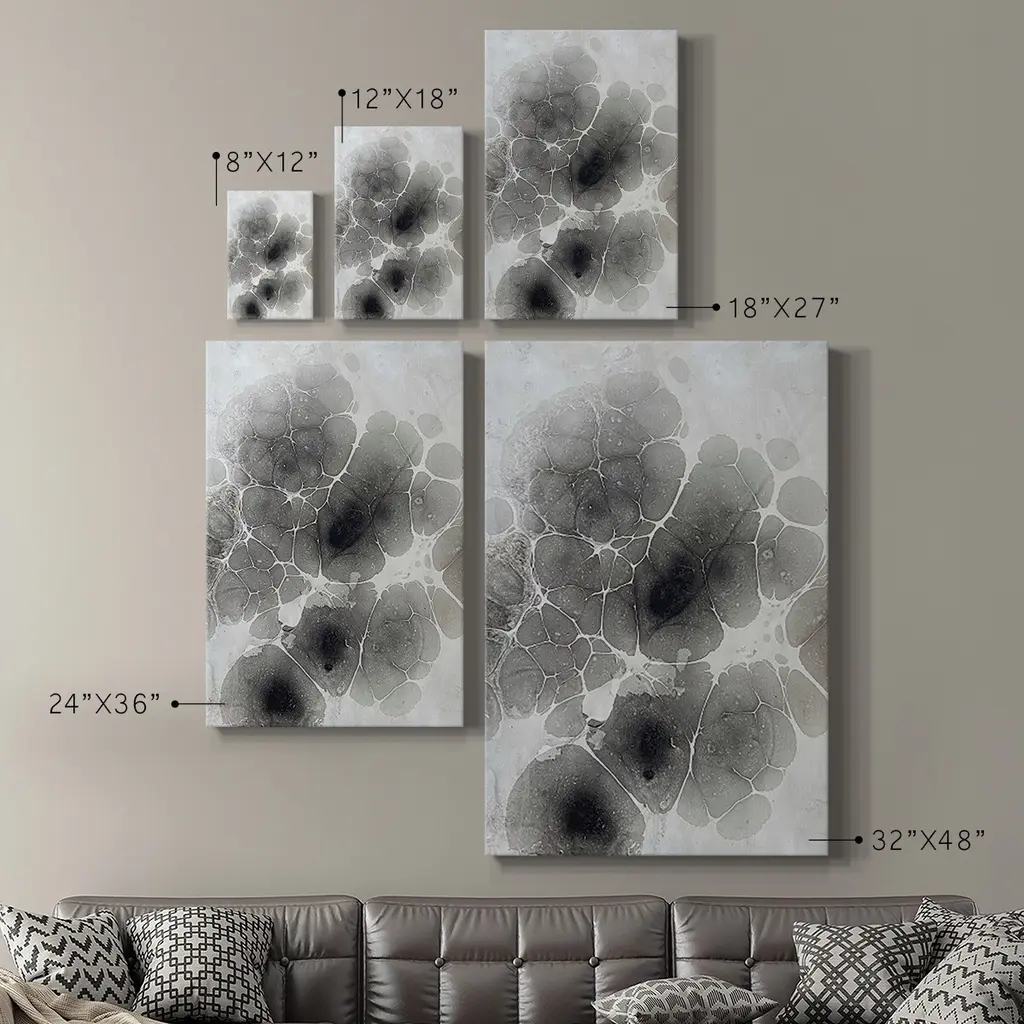 Marbling XI Premium Gallery Wrapped Canvas - Ready to Hang A premium hand stretched gallery wrapped canvas print created to last. Featuring a beveled a solid wood stretcher bar, each piece comes ready to hand 6 SIZES AVAILABLE 8''X12'' - Overall Size 12''X18'' - Overall Size 18''X27'' - Overall Size 24''x36'' - Overall Size 32''x48'' - Overall Size 40''x60'' - Overall Size Each piece is made to order. Built to Last Each piece comes ready to hang Solid wood stretcher Fade and Water resistant Made domestically