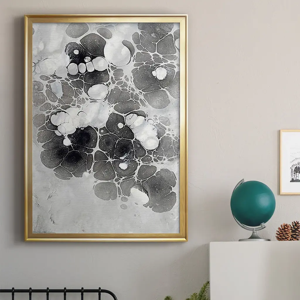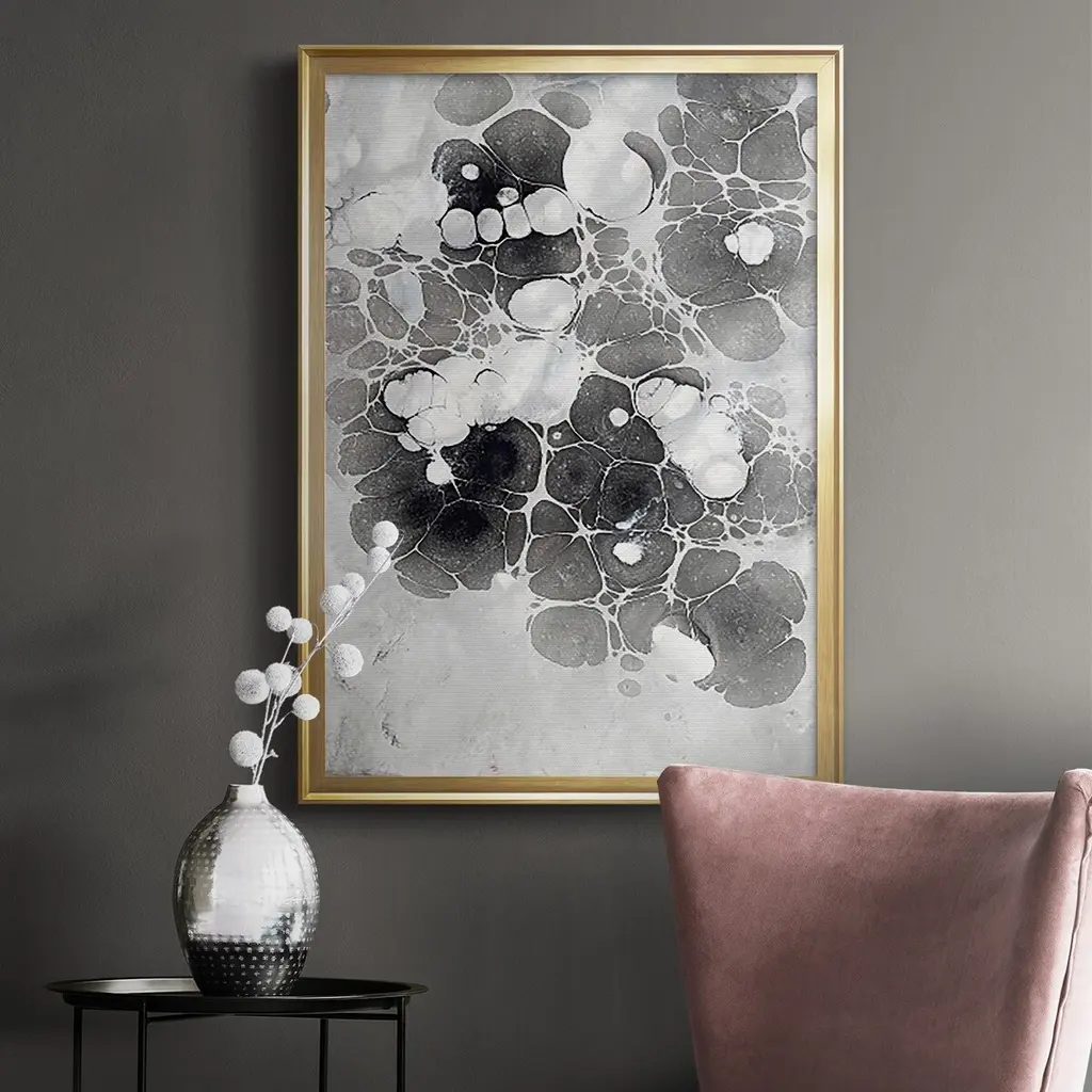 Marbling XIII Premium Framed Print - Ready to Hang A Premium Framed Print created to last. Framed in distressed wood and available in an array of sizes and colors Featuring a beveled a solid wood stretcher bar, each piece comes ready to hand 4 SIZES AVAILABLE 30.5''X42.5'' - Overall Size 26.5'X36.5'' - Overall Size 22.5''x30.5'' - Overall Size 18.5''x24.5'' - Overall Size Each piece is made to order. Each piece comes with hanging hardware. Made in the USA Ready to Hang