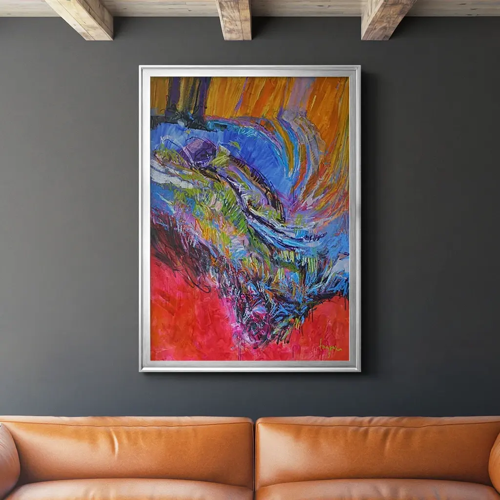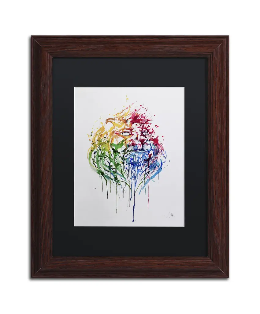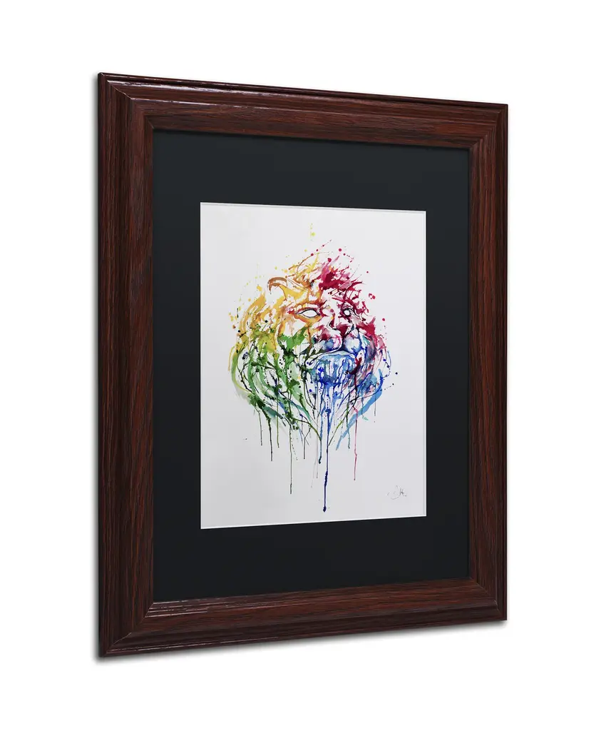 Artist: Marc AllanteSubject: AnimalsStyle: ContemporaryProduct Type: Wood Frame, Black Mat, AcrylicMade in USAThis ready to hang, matted framed art piece features a lion's head formed from colorful watercollor drips and splatters.Hong Kong born artist Marc Allante exhibited a passion for the visual arts from an early age. Having lived in Hong Kong, Sydney and London, his work is inspired in both form and style by these western and eastern influences. Merging traditional Chinese inks with European watercolour and pen techniques in a contemporary style reflects the fusion of his Chinese-French ancestry and brings it into a modern context. Represented by the Avenue Des Arts gallery in Hong Kong, this entirely self taught artist utilizes a variety of techniques, subject matter and themes to expand the repertoire of his ink and art collection.An 8x10 giclee print under acrylic in an 11x14 wood frame. Giclee (jee-clay) is an advanced printmaking process for creating museum quality fine art reproductions. This high quality print is matted using black matting and comes in a wood frame. A clear acrylic facing is added to protect the print. The piece is fully assembled by professional framers and comes ready to hang. The black mat allows the image to really stand out, making it a great addition to any space.
