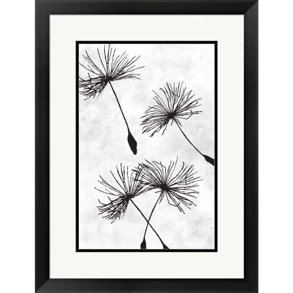Dandelion Flight 1 by Marcus Prime is a high quality piece of framed artwork. The finished size of this piece is 19.25" X 25.25". It has a Slim Solid Black Flat with Satin Finish frame, is double matted and finished with high quality Acrylic Plexiglass. 100% Satisfaction Guaranteed.