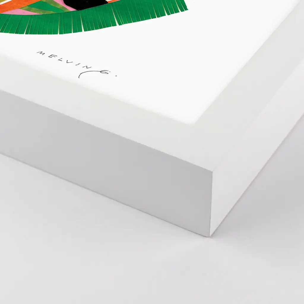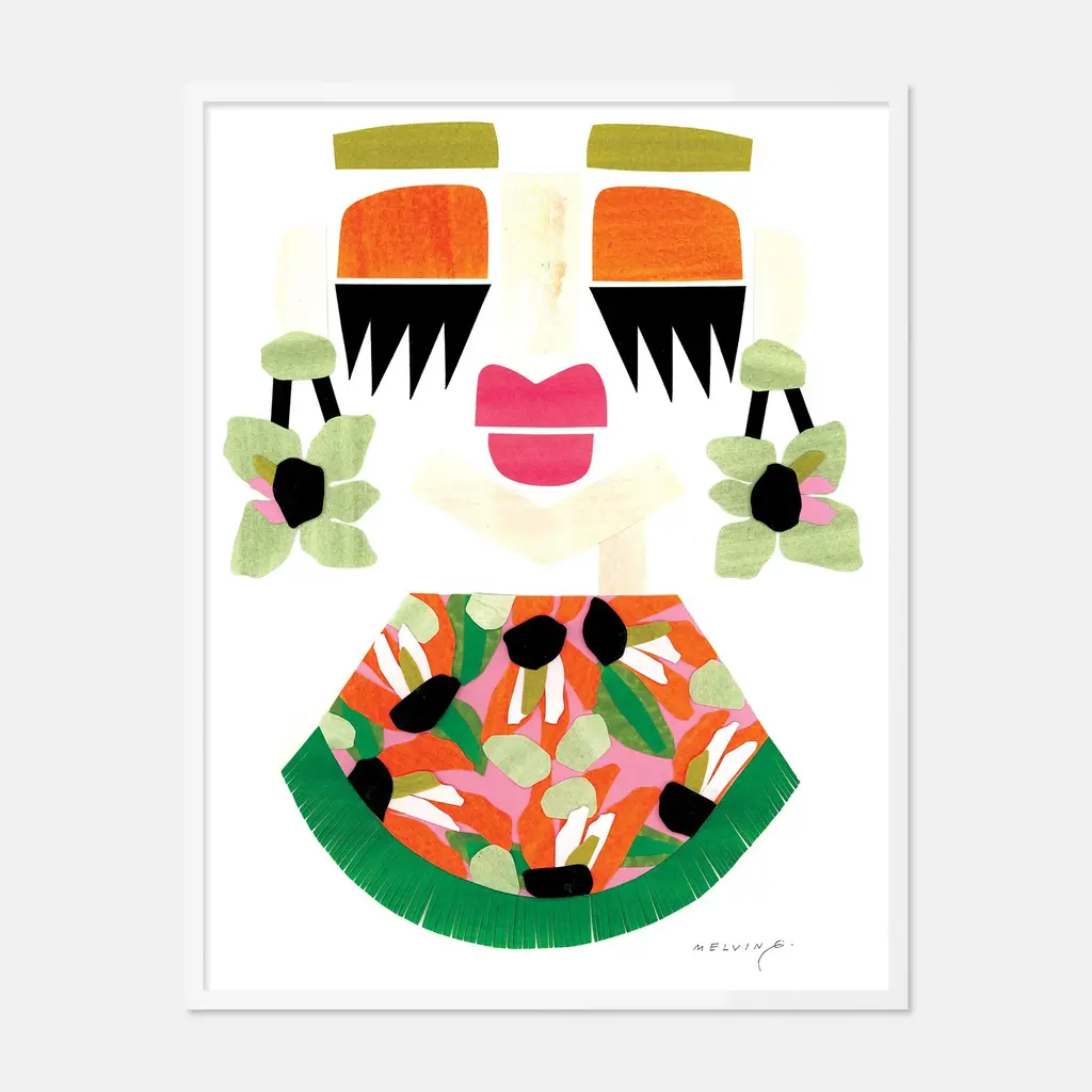 DESCRIPTION: Mari by Melvin G in White Frame, Small Art Print SPECIFICATIONS: Type: Framed Paper. Framed Size (in): 18.5x24. Orientation: Vertical. Flush/Float/Matted: Flush. Frame Color: White. Hanging Hardware: Picture Perfect. FRAMING: Each art work arrives framed and ready to hang. We use handmade frames with a plexiglass glazing front, because it offers less glare than standard glass. At this time, we only offer framed prints. ARTIST BIO: Morgan Elvington Walker received a Bachelor of Fine Arts from Clemson University. While studying abroad in Orvieto, Italy she obtained the nickname Melvin G. which comes from her first initial and part of her maiden name. The name stuck and became her signature on all of her work. She currently lives in Florence, South Carolina.