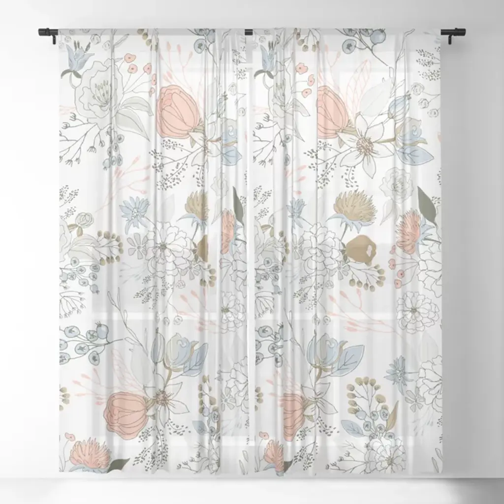 Blackout curtains are crafted with 100% woven polyester with a linen-like texture.Light-Filtering curtains are crafted with 100% mid-weight polyester.Sheer curtains are crafted with 100% lightweight polyester.Single sided print with white on reverse.Available in single or double panel options (double panels feature the same design on both).4" bottom pocket for easy hanging on any curtain rod (please note: artwork will appear upside down on non-patterned designs).Machine washable for easy care.Please note: Color variations may occur between on-site previews, your screen, and the printed fabric.Blackout, Light-Filtering, and Sheer Curtains are easy to care for:Machine wash cold.Use gentle cycle.Tumble dry low.SHIPPING: Items are made to order and typically ship within 3-4 business days. Click here for more information about delivery options.RETURNS: Return requests can be made within 30 days of your item(s) delivery. Click here for more information on returns.