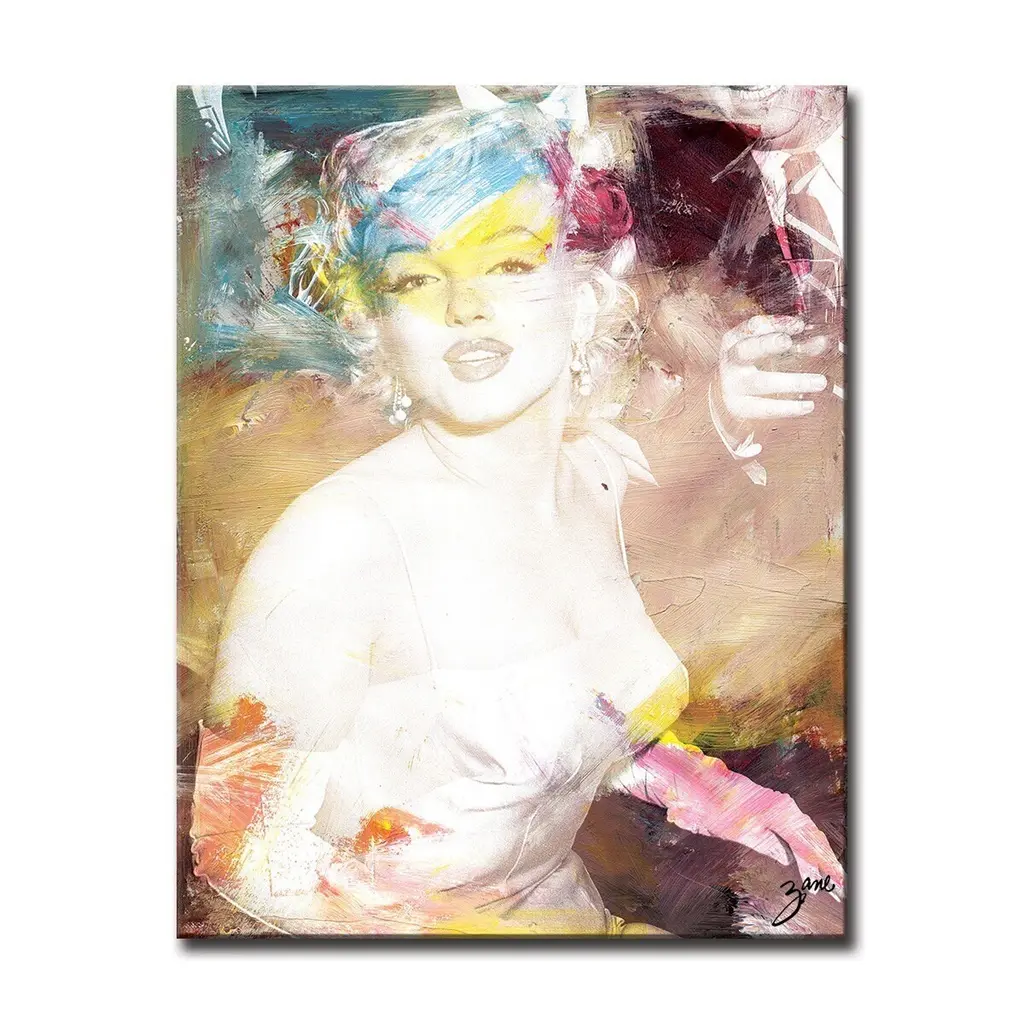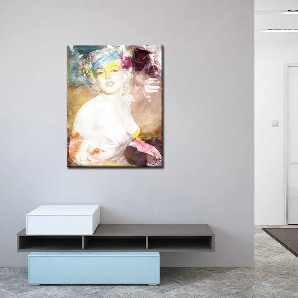 Add a touch of modern sophistication to your home decor with this pop culture abstract canvas art featuring Hollywood icon Marilyn Monroe in tones of beige, purple, blue, yellow, magenta, and brown. The decorative artwork, 'Marilyn', will complement your space with its colorful and striking aesthetic. This piece is handcrafted in Chattanooga, Tennessee using a fine art print on canvas, and assembled on a pine wood frame finished with a rear hanger for simple installation. This canvas art vividly captures the contemporary style and bold hues found in the Salvatore Principe collection.Product Features: Carefully printed on UV/water resistant poly-cotton matte canvas Skillfully hand wrapped on a kiln dried pine wood frame Hanging hardware included for easy installation Made in the USASizes Available:16" W x 20" H20" W x 30" H30" W x 40" HAdditional Features:Orientation: Portrait Colors: Blue, Yellow, Purple, Brown, BeigeTitle: MarilynModel No. Z044About Gallery Wrapped CanvasMasterfully produced at R2H factory in Chattanooga, TN., on water resistant canvas using solvent inks, and skillfully wrapped on a wood frame finished with a rear saw-tooth hanger for simple installation. Care Instructions: To clean, wipe with a damp cloth. Do not use cleaning solutions.About Ready2HangArtEstablished in 2013, Ready2HangArt came to life with a vision of innovating the wall decor market while supporting local artists. To this day, the company's mission is to design and craft art locally at their facility in TN, employ environmentally conscious practices and give back to the community through various channels like their Minor Masters youth outreach program.