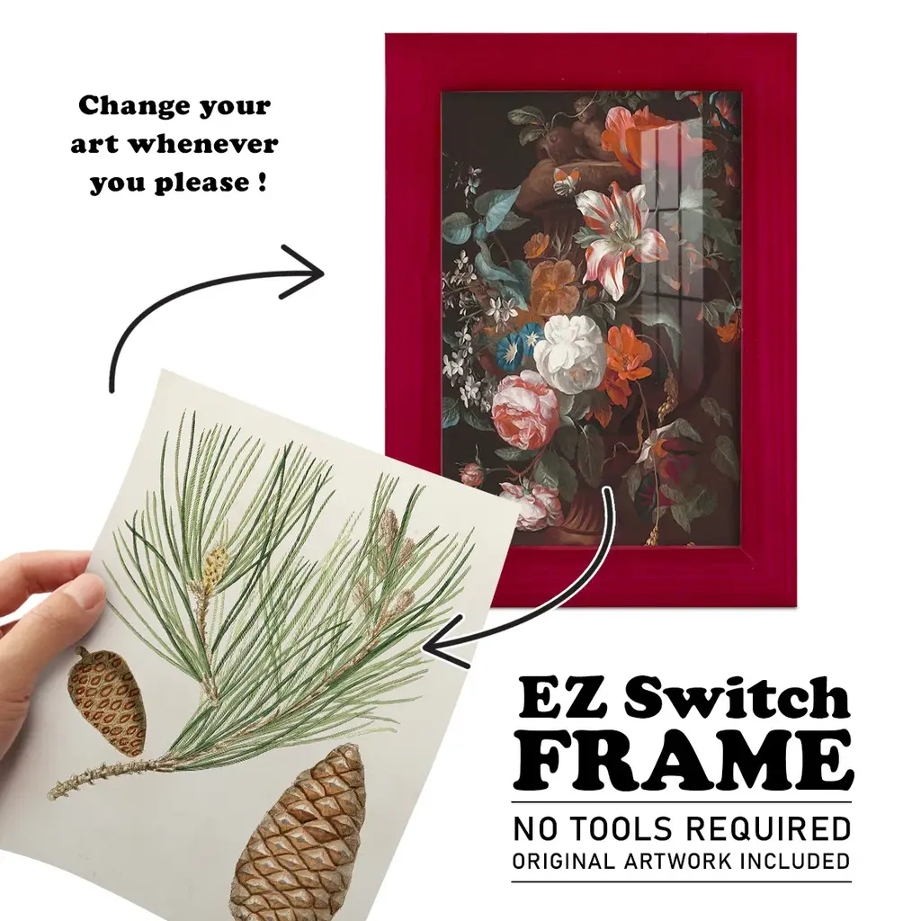 Marine Morocco Collection TP -EZ SWITCH Framed Print w/glass-Cherry Red A delightful, framed print. Featuring a solid wood frame with real wood glass. This premium print is giclee quality. In addition, every frame features a removable back and table top stand. This allows you to change your art in the future or to just stand the art on a table for a new look. We are sure you'll enjoy our new series of EZ SWITCH Framed Art. Solid Wood Frame Real Glass Removable / Replaceable Art Built in Tabletop Stand Sizes range from 4x6 up to 12x15 - buy just one or pair them up as sets as you see fit.