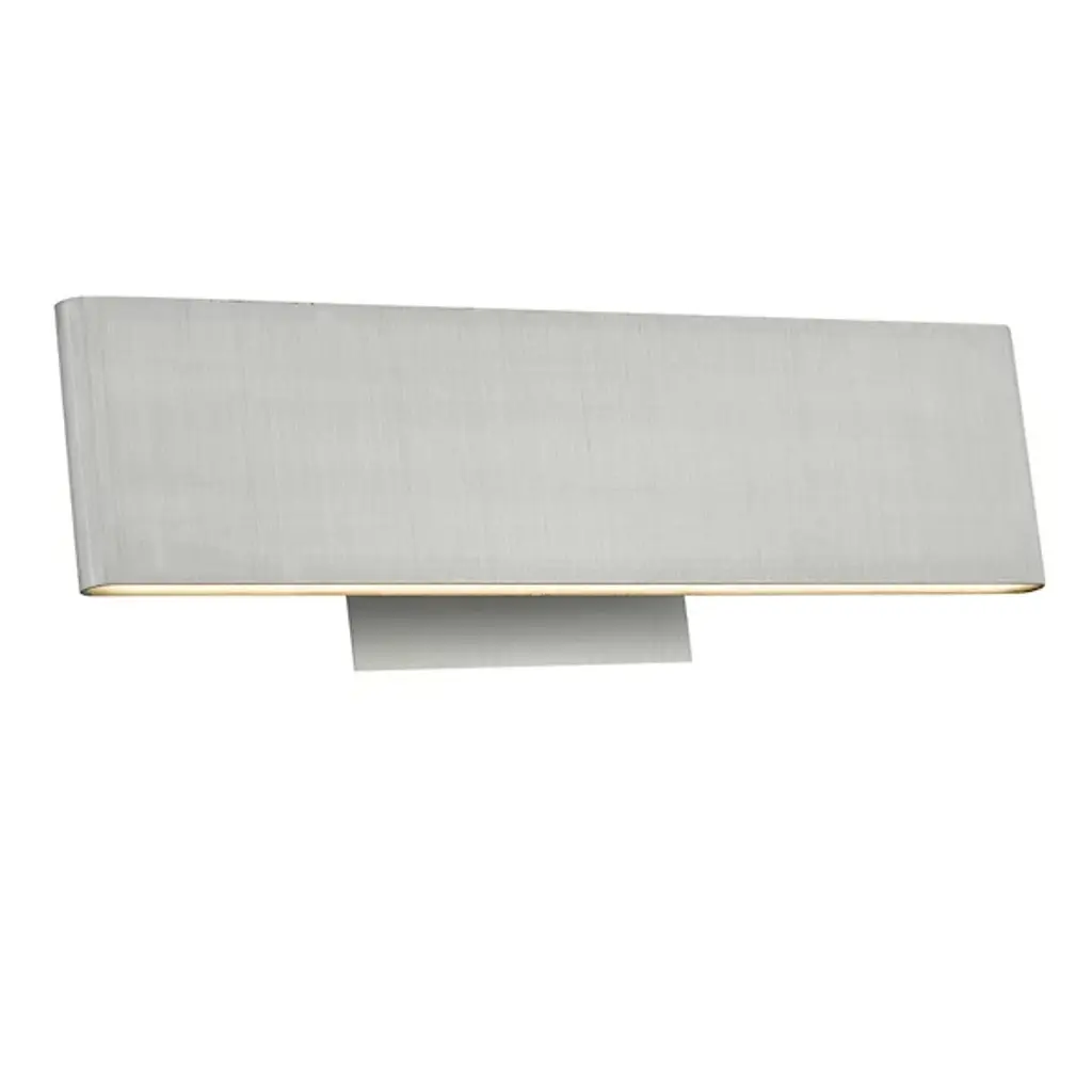 The Mario LED Vanity Light from Huxe realizes a balance of form and function with a cool minimalist design. Lightweight, pliable aluminum is fashioned into the rounded rectangular housing for the piece. The crisp angles of the aluminum backplate produce an elegant juxtaposition with the pronounced rounded-edged form. The face of the 2 shapes presents a smooth surface with a brushed visual texture. White acrylic diffusers on the top and bottom filter out a dynamic LED light.