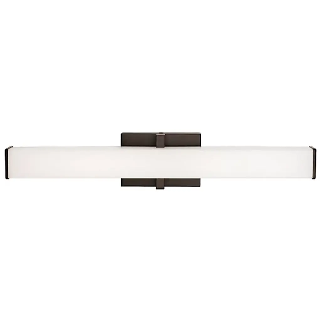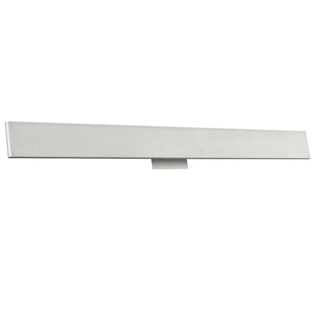 The Mario LED Vanity Light from Huxe realizes a balance of form and function with a cool minimalist design. Lightweight, pliable aluminum is fashioned into the rounded rectangular housing for the piece. The crisp angles of the aluminum backplate produce an elegant juxtaposition with the pronounced rounded-edged form. The face of the 2 shapes presents a smooth surface with a brushed visual texture. White acrylic diffusers on the top and bottom filter out a dynamic LED light.