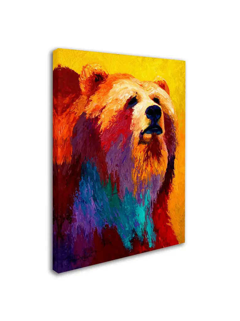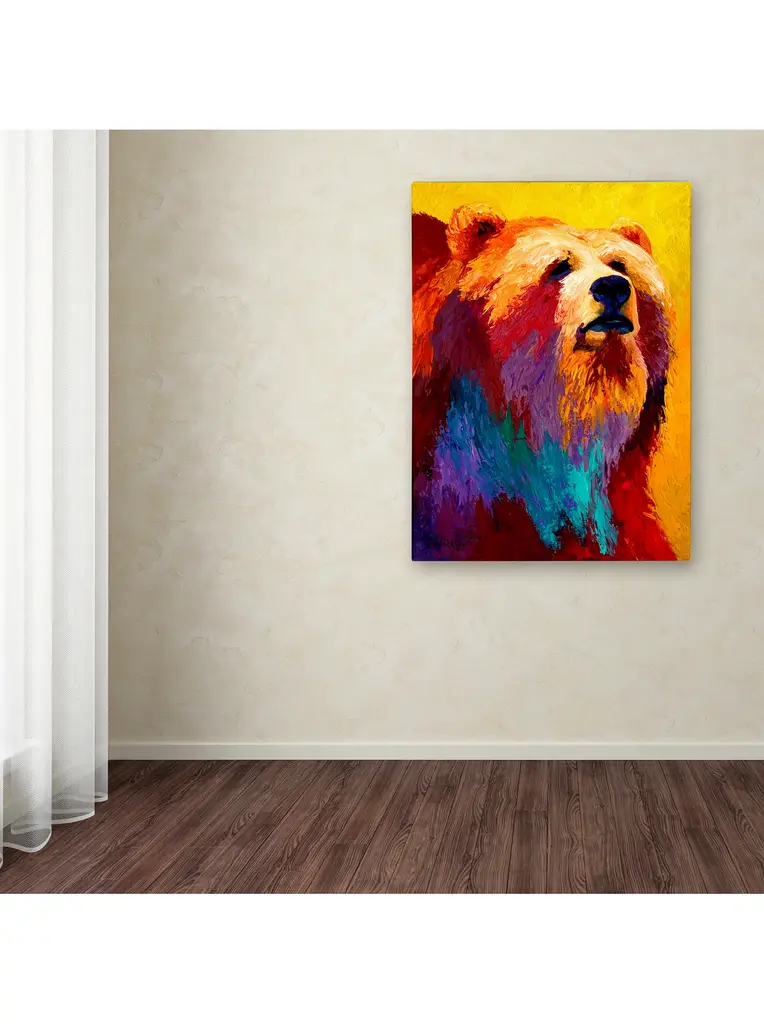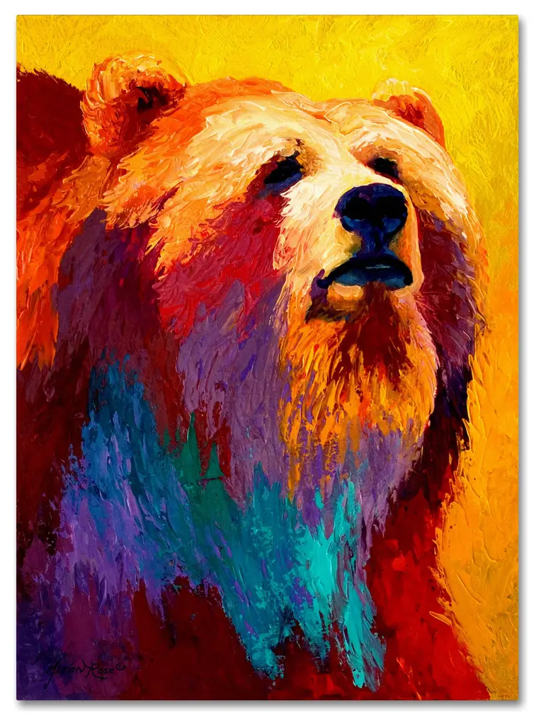 Artist: Marion RoseSubject: AnimalStyle: Modern & ContemporaryProduct Type: Gallery-Wrapped Canvas ArtMade in USAThis ready to hang, gallery-wrapped art piece features a portrait of a bear on a yellow background.Most days, one would find Marion Rose putting on her favorite music or playing an old video before settling in to paint for the day in her spacious studio, especially once the winter chill set in. Her work is influenced by past masters such as Joaquin Sorolla, Tom Thomson, Carl Rungius, Bob Kuhn, and many others that work today in a variety of subject and media. She also studied printmaking, life painting and drawing in college in her 30's. Her subjects come from her life of traveling enthusiastically as often as she could, both close to home or across the ocean. Sketching and studying animals were a favorite pastime, setting an excellent foundation for creating authentic work. Texture and richly colored paint applied generously by knife or brush strokes capture the essence of a subject's spirit and demeanor.Giclee (jee-clay) is an advanced printmaking process for creating high quality fine art reproductions. The attainable excellence that Giclee printmaking affords makes the reproduction virtually indistinguishable from the original piece. The result is wide acceptance of Giclee by galleries, museums, and private collectors. Gallery wrap is a method of stretching an artist's canvas so that the canvas wraps around the sides and is secured a hidden, wooden frame. This method of stretching and preparing a canvas allows for a frameless presentation of the finished painting.