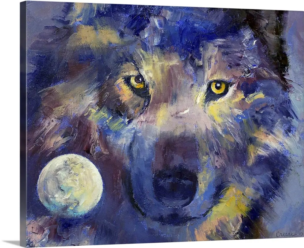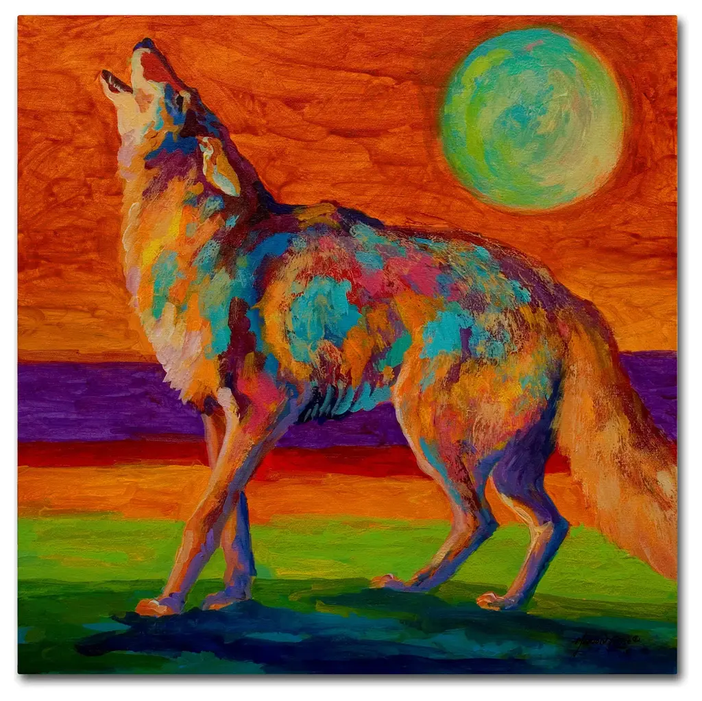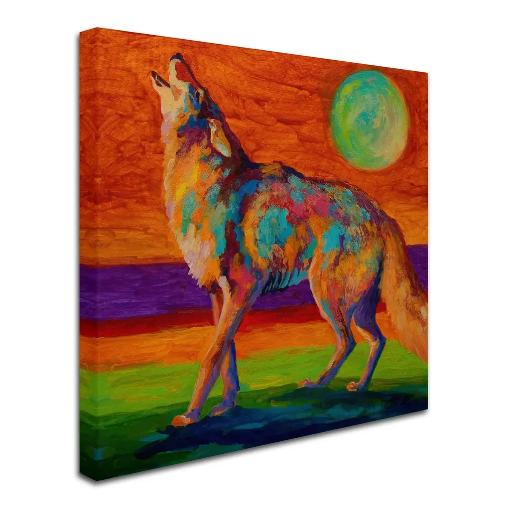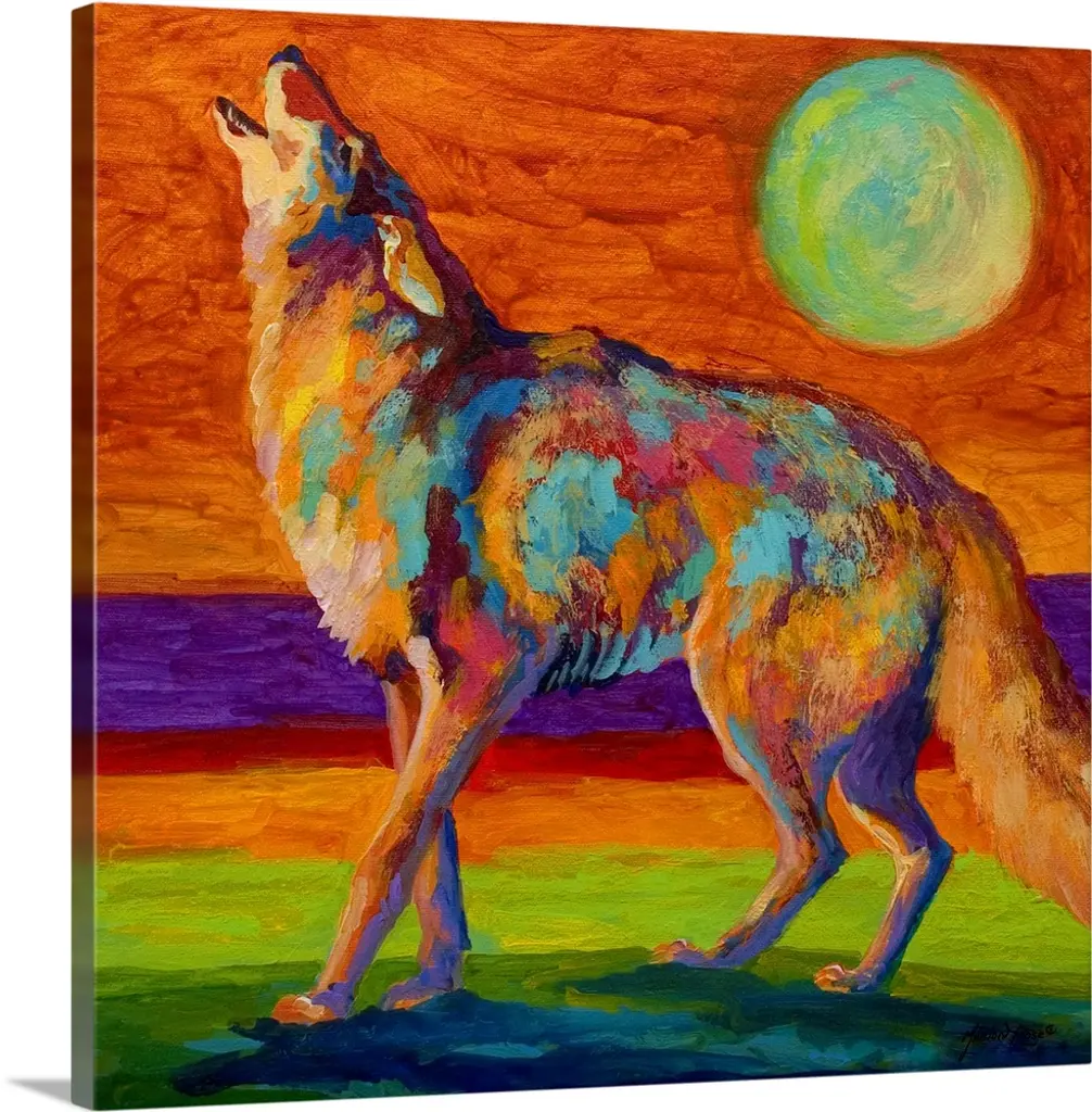 Artist: Marion RoseSubject: AnimalsStyle: Mid-Century ModernProduct Type: Gallery-Wrapped Canvas ArtMade in USAThis ready to hang, gallery-wrapped art piece features a wolf howling in the center of the frame.Most days, one would find Marion Rose putting on her favorite music or playing an old video before settling in to paint for the day in her spacious studio, especially once the winter chill set in. Her work is influenced by past masters such as Joaquin Sorolla, Tom Thomson, Carl Rungius, Bob Kuhn, and many others that work today in a variety of subject and media. She also studied printmaking, life painting and drawing in college in her 30's. Her subjects come from her life of traveling enthusiastically as often as she could, both close to home or across the ocean. Sketching and studying animals were a favorite pastime, setting an excellent foundation for creating authentic work. Texture and richly colored paint applied generously by knife or brush strokes capture the essence of a subject's spirit and demeanor.Giclee (jee-clay) is an advanced printmaking process for creating high quality fine art reproductions. The attainable excellence that Giclee printmaking affords makes the reproduction virtually indistinguishable from the original piece. The result is wide acceptance of Giclee by galleries, museums, and private collectors. Gallery wrap is a method of stretching an artist's canvas so that the canvas wraps around the sides and is secured a hidden, wooden frame. This method of stretching and preparing a canvas allows for a frameless presentation of the finished painting.