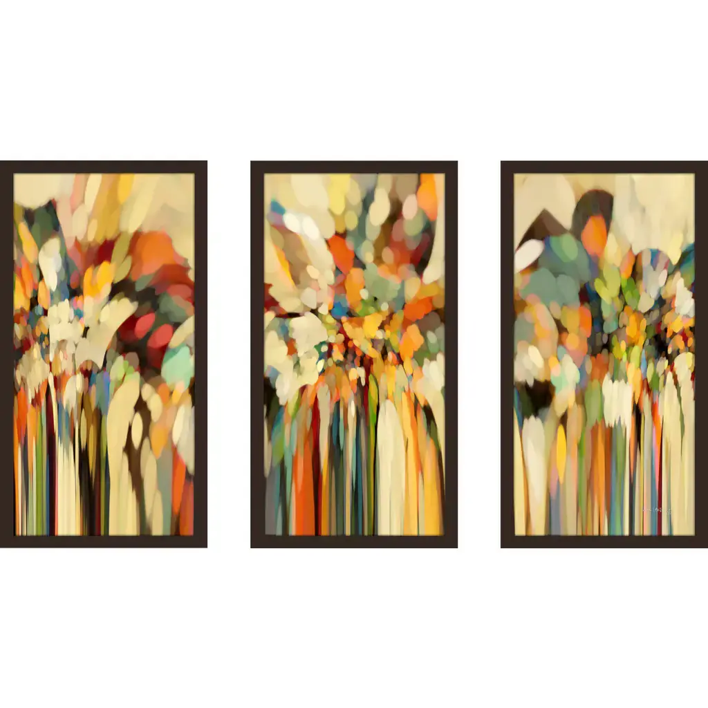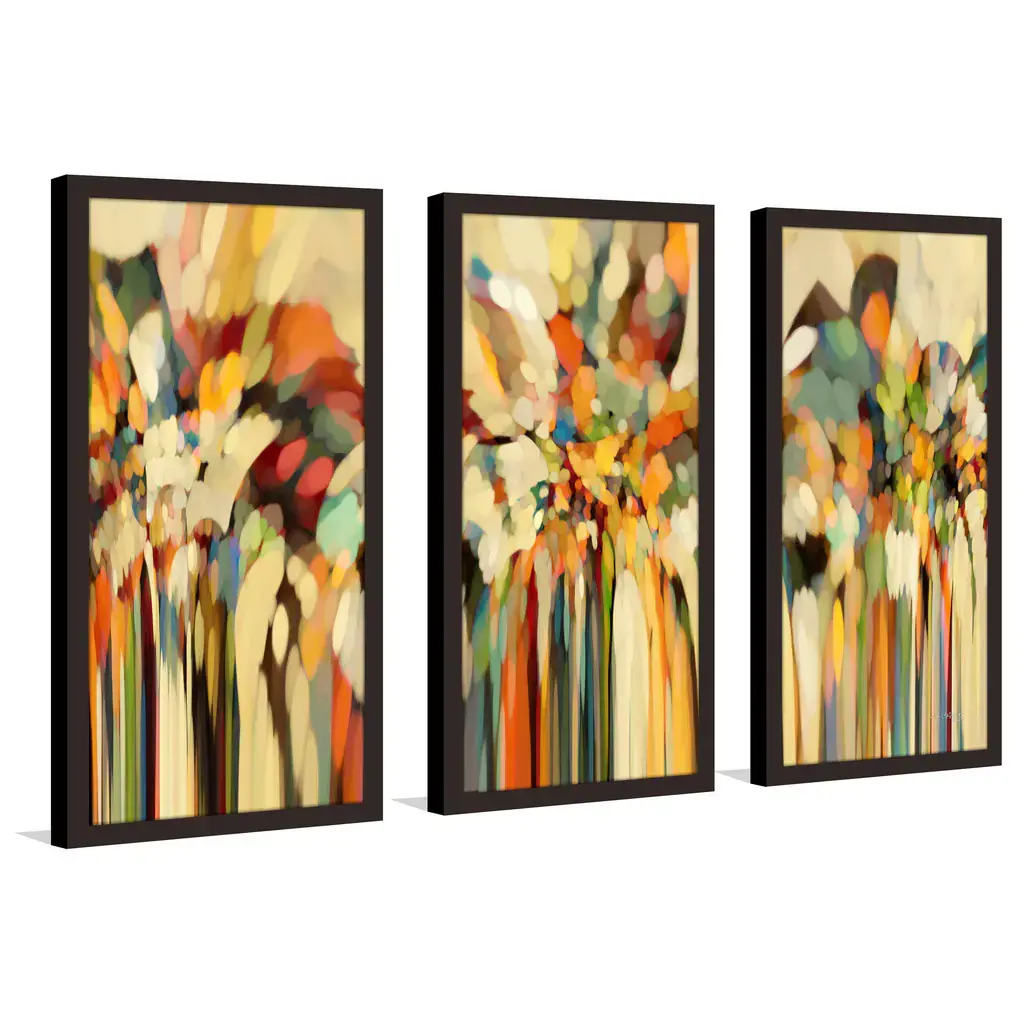 Jumpstart your decor with these dynamic prints. Showcasing an abstract design reminiscent of rushing headlights and busy streets, this three-piece artwork set is printed directly onto Plexiglass for shatterproof safety and easy maintenance. The dark brown frame gives these prints a clean, finished look and comes ready to hang for your convenience.