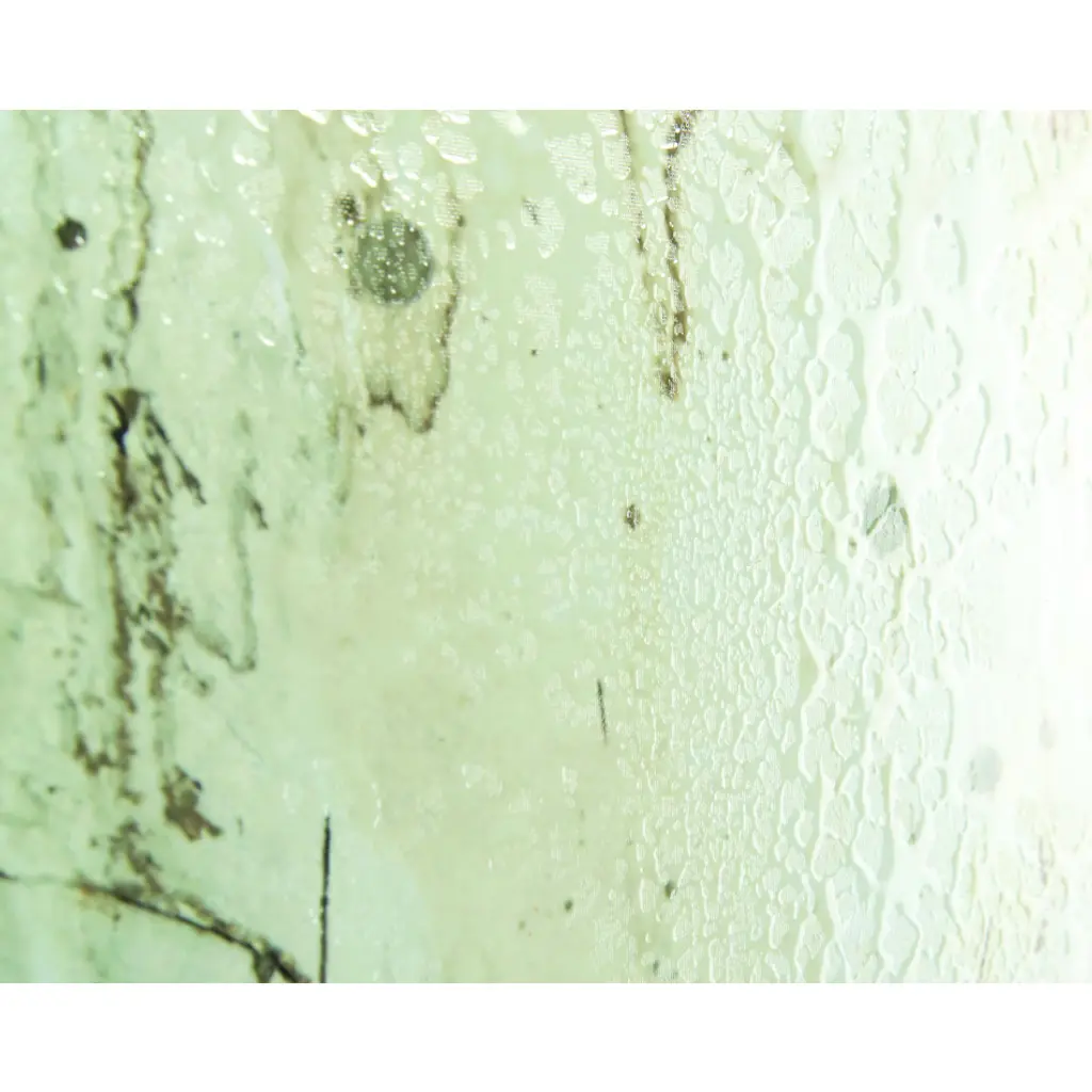 55.25"W X 73.25"H X 2"D This celestial abstract by Mark McDowell, with textural and gold-leaf detailing, has a broken vitreous finish. The piece is framed in a white wood floater molding.