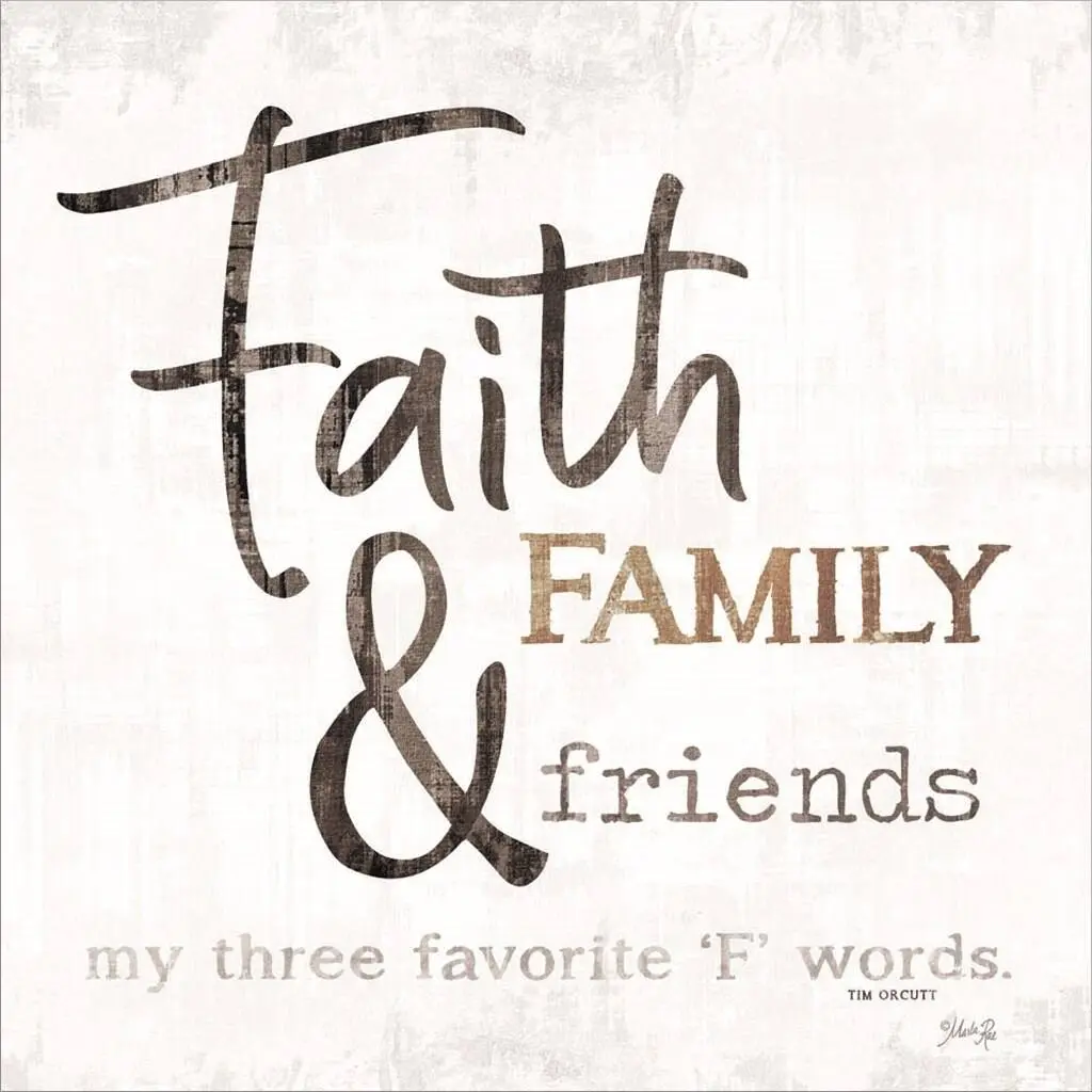 Three Favorite 'F' words by Marla Rae is a high quality piece of framed artwork. The finished size of this piece is 13.25" X 13.25". It has a Mahogany Deep Box frame and is finished with high quality glass. 100% Satisfaction Guaranteed.