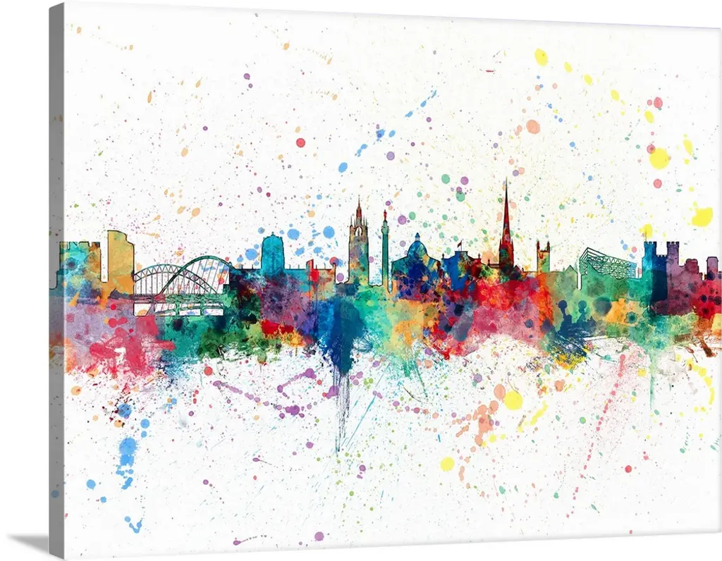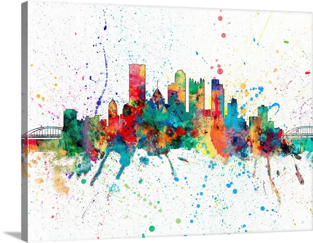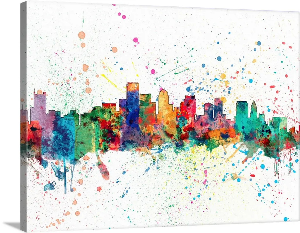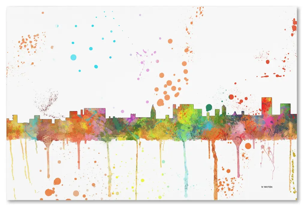 Artist: Marlene WatsonSubject: LandscapesStyle: ContemporaryProduct Type: Gallery-Wrapped Canvas ArtMade in USAThis ready to hang, gallery-wrapped art piece features a colorfully painted skyline of Cheyenne, Wyoming.Born in Scotland and now residing in Hong Kong, Marlene Watson has been painting her way through life. She paints things she notices in everyday life and brings out her positive energy through her work. Marlene has gallery showings and has also illustrated a children's book. She cares for 12 cats and works toward animal conservation and rescues with her art.Giclee (jee-clay) is an advanced printmaking process for creating high quality fine art reproductions. The attainable excellence that Giclee printmaking affords makes the reproduction virtually indistinguishable from the original piece. The result is wide acceptance of Giclee by galleries, museums, and private collectors. Gallery wrap is a method of stretching an artist's canvas so that the canvas wraps around the sides and is secured a hidden, wooden frame. This method of stretching and preparing a canvas allows for a frameless presentation of the finished painting.