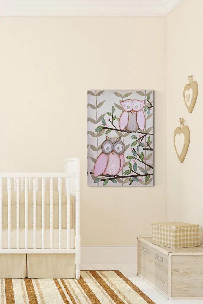 Marmont Hill, "2 Pink Owls" By Reesa Qualia Painting On Wrapped Canvas, 24x36