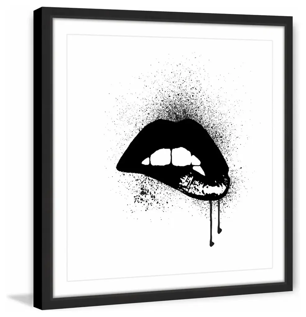 Marmont Hill, "Black Drip Lips" By Amanda Greenwood Framed Painting Print, 12x12