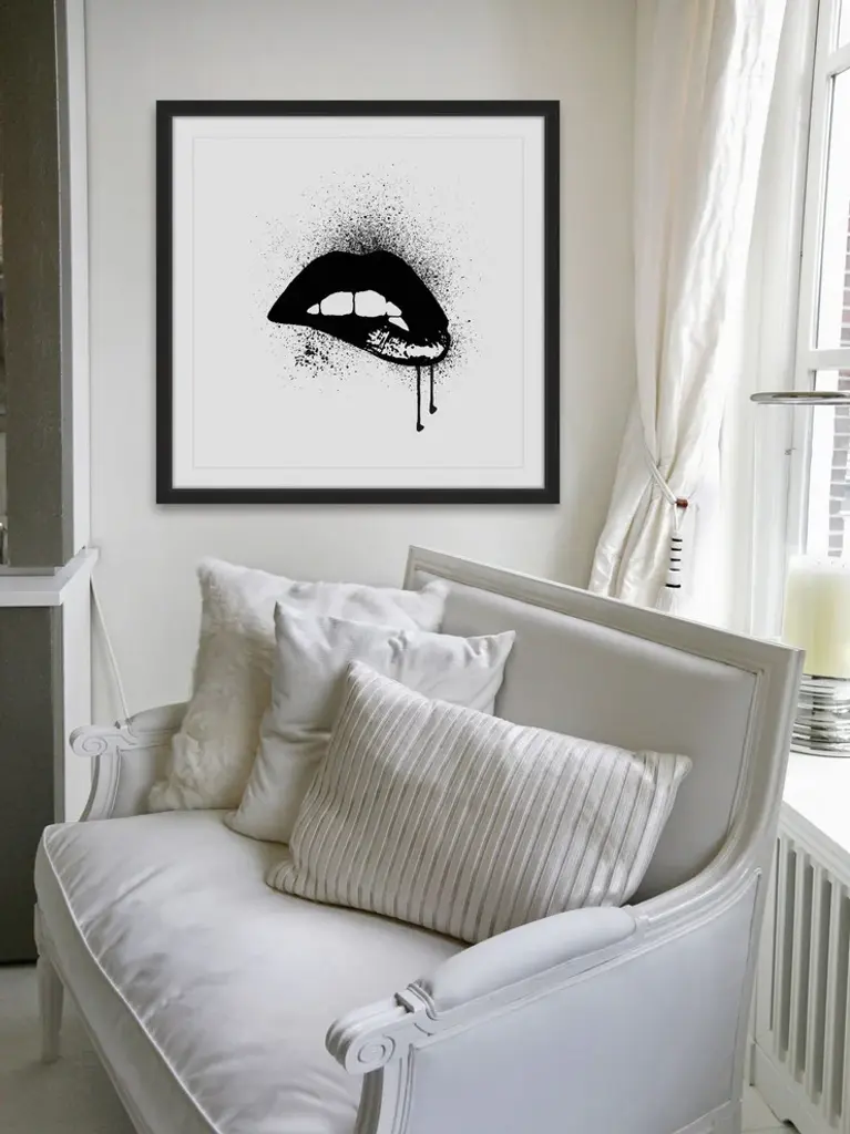Marmont Hill, "Black Drip Lips" By Amanda Greenwood Framed Painting Print, 18x18