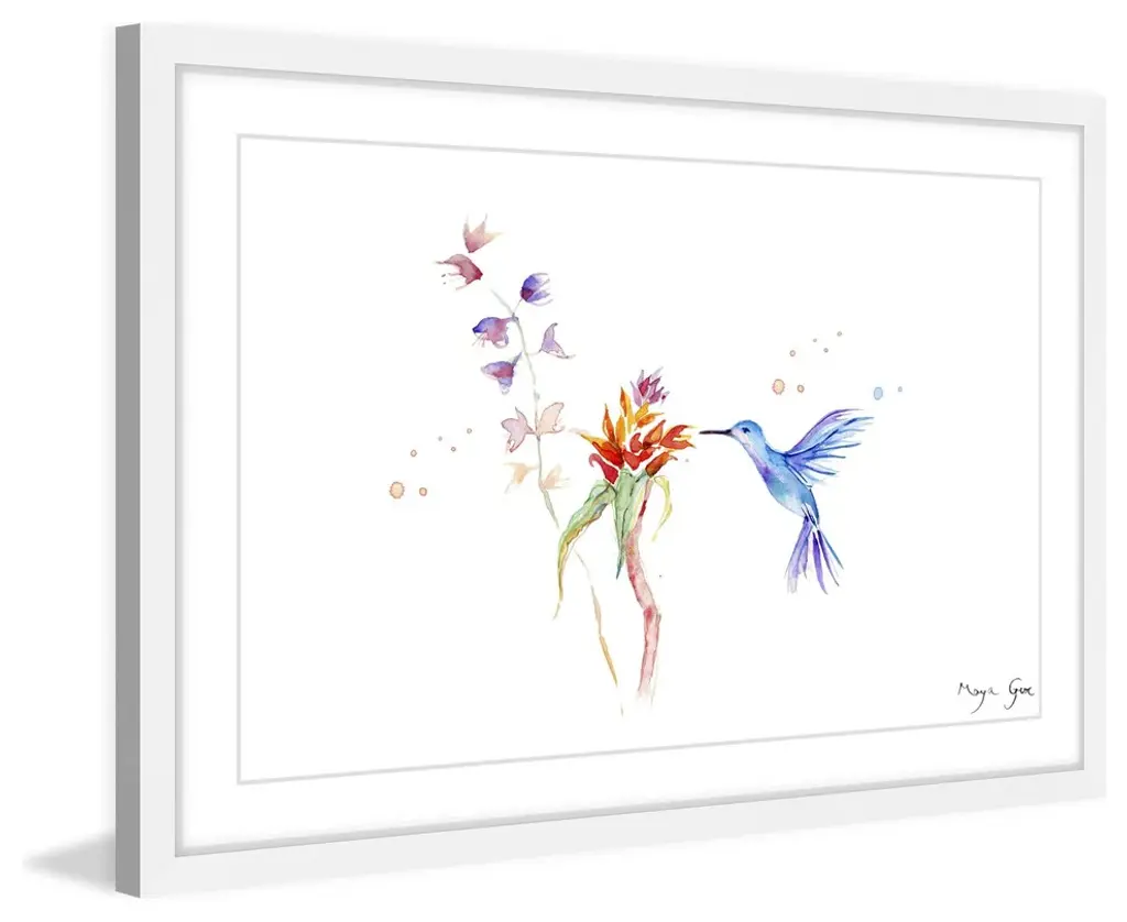Marmont Hill, "Blue Hummingbird" By Maya Gur Framed Painting Print, 45x30