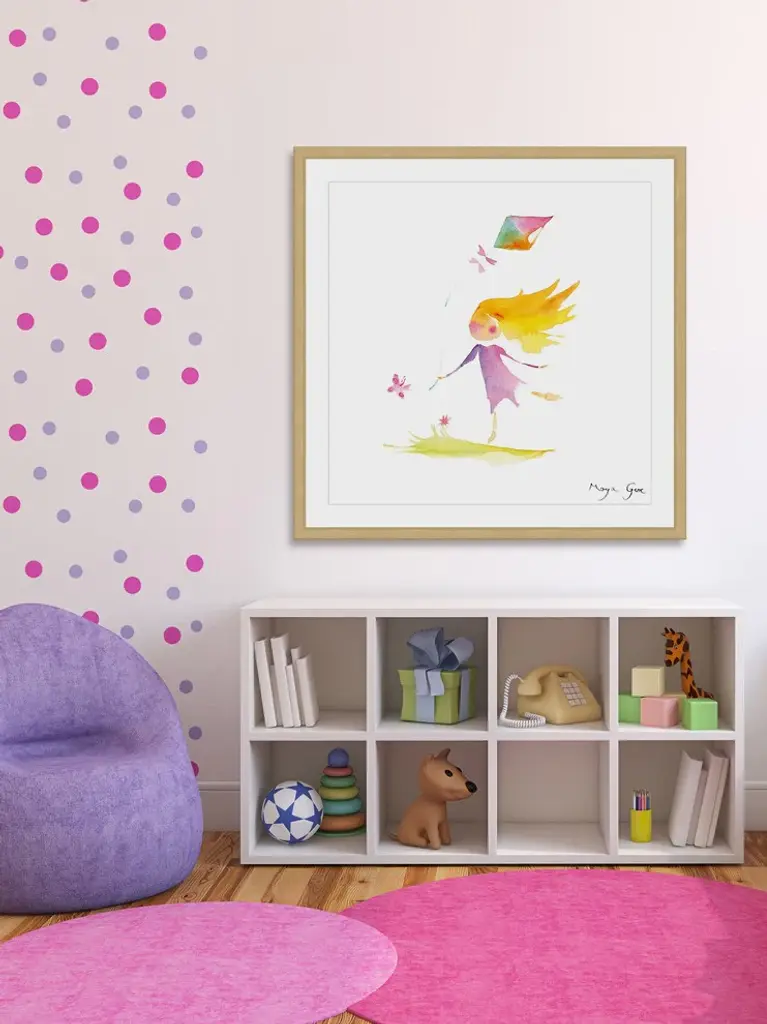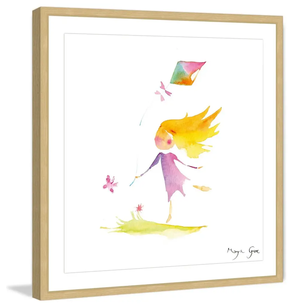 Marmont Hill, "Girl With Kite" By Maya Gur Framed Painting Print, 18x18