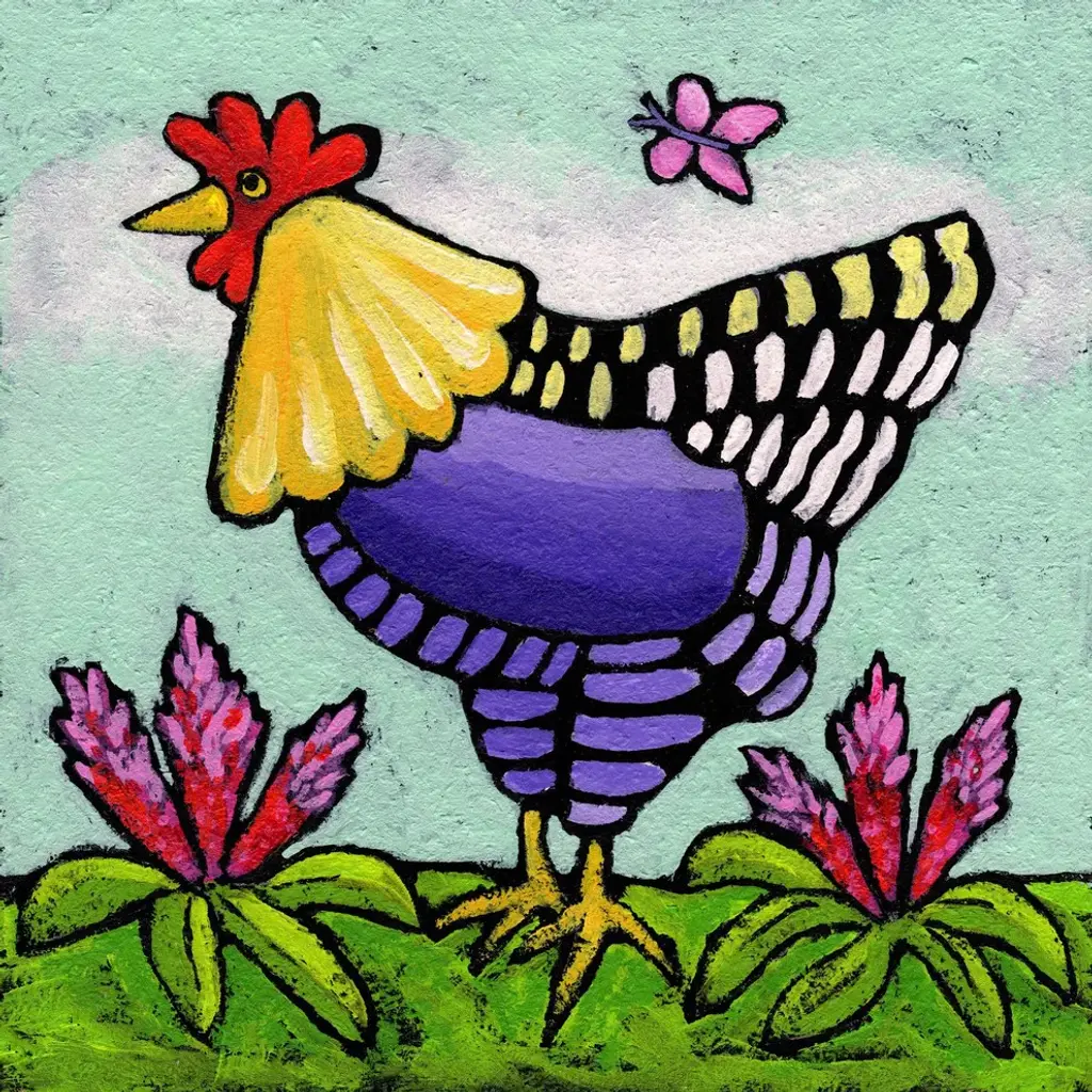 Marmont Hill, "Hen With Cockscomb" By Janet Nelson On Wrapped Canvas, 32x32