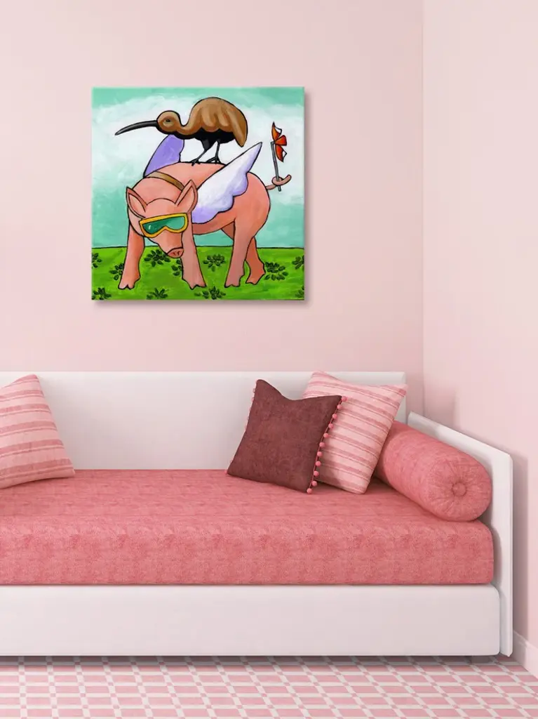 Marmont Hill, "Kiwis Pig Adventure" By Janet Nelson On Wrapped Canvas, 18x18