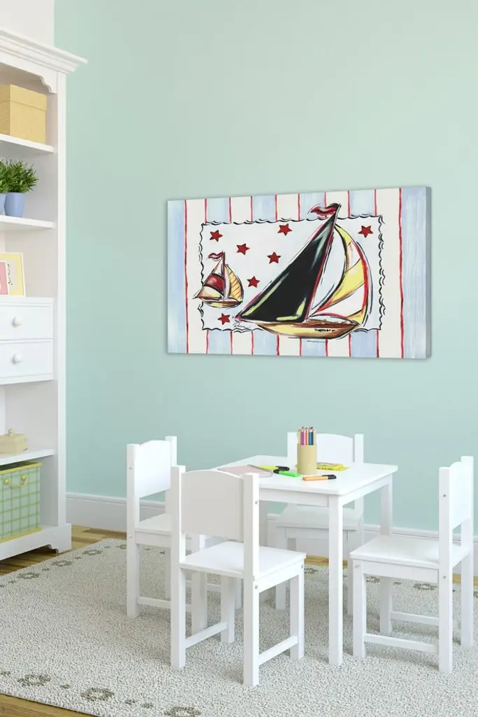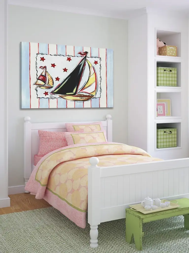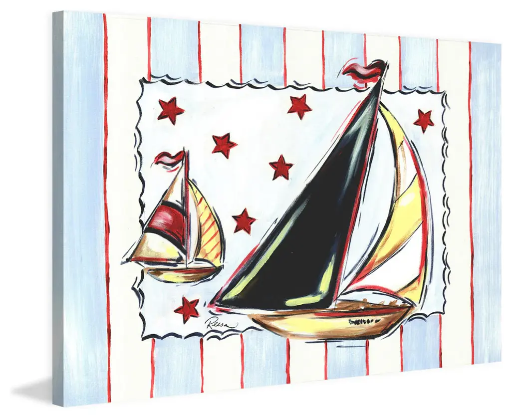 Marmont Hill, "Sailboat Blue" By Reesa Qualia Painting On Wrapped Canvas, 30x20