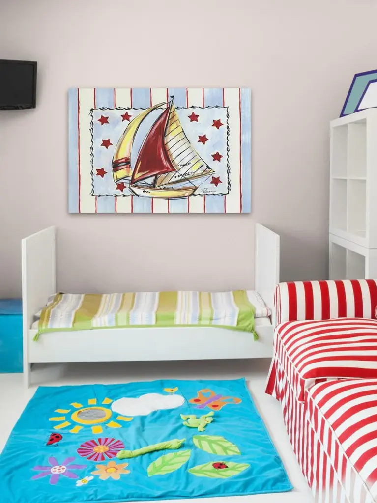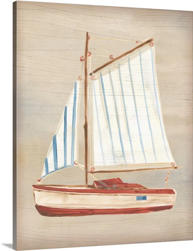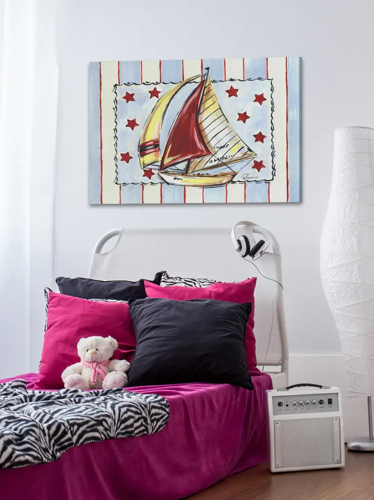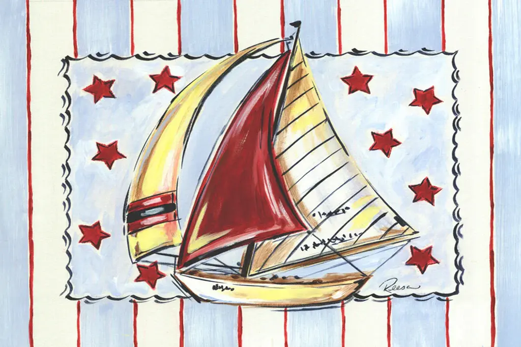 Marmont Hill, "Sailboat Red" By Reesa Qualia Painting On Wrapped Canvas, 30x20
