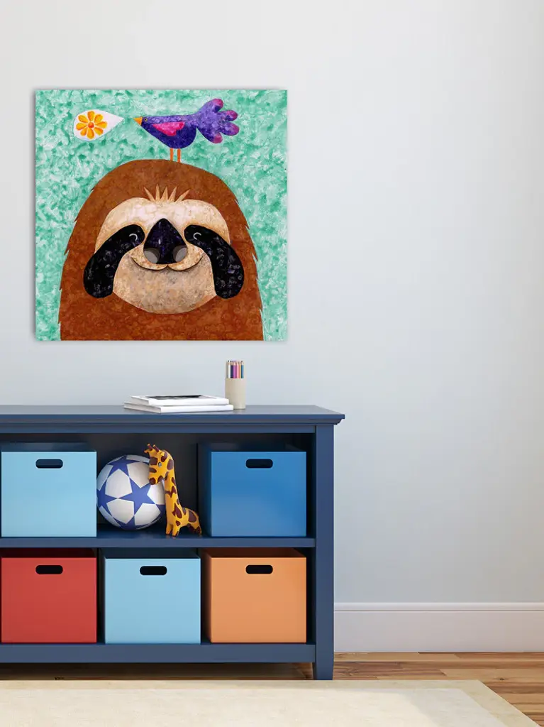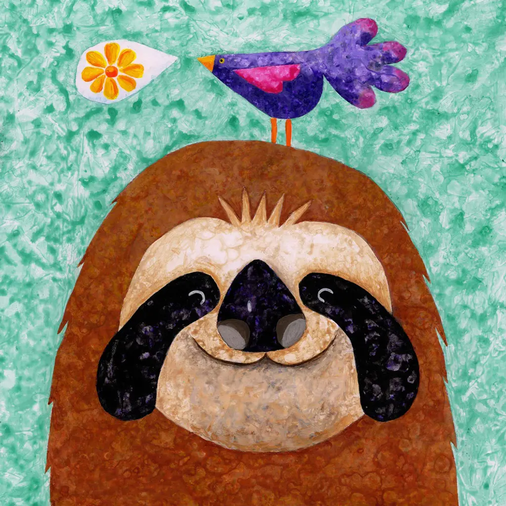Marmont Hill, "Sloth Happy" By Janet Nelson Painting On Wrapped Canvas, 18x18
