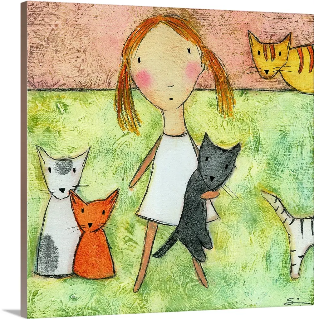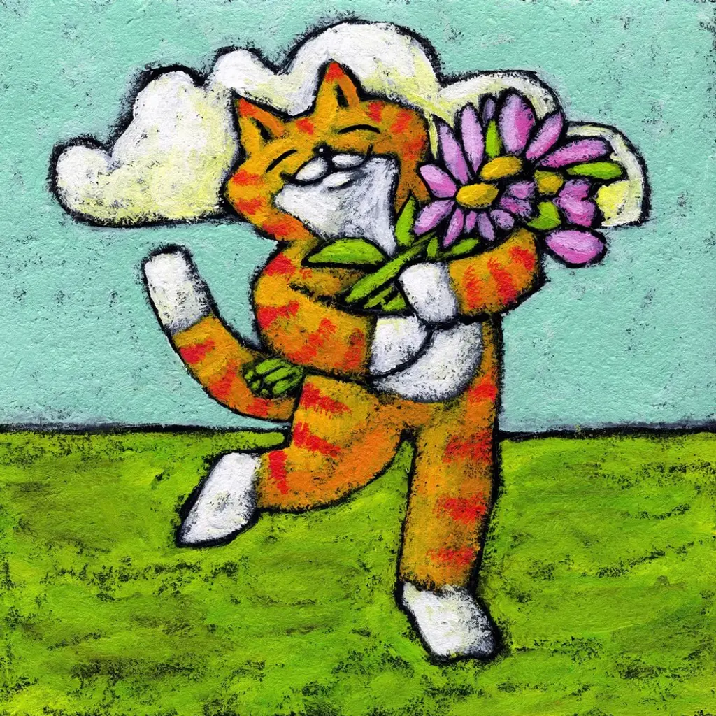 Marmont Hill, "Tiger Cat Flower Dance" By Janet Nelson On Wrapped Canvas, 32x32