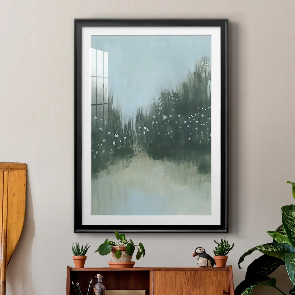 Marsh Morning Fog II Premium Framed Print - Ready to Hang A Premium Framed Print created to last. Framed in distressed wood and available in an array of sizes and colors Featuring a beveled a solid wood stretcher bar, each piece comes ready to hand 4 SIZES AVAILABLE 30.5''X42.5'' - Overall Size 26.5'X36.5'' - Overall Size 22.5''x30.5'' - Overall Size 18.5''x24.5'' - Overall Size Each piece is made to order. Each piece comes with hanging hardware. Made in the USA Ready to Hang Giclee Paper Print Acrylic Glass Beveled Matt Board