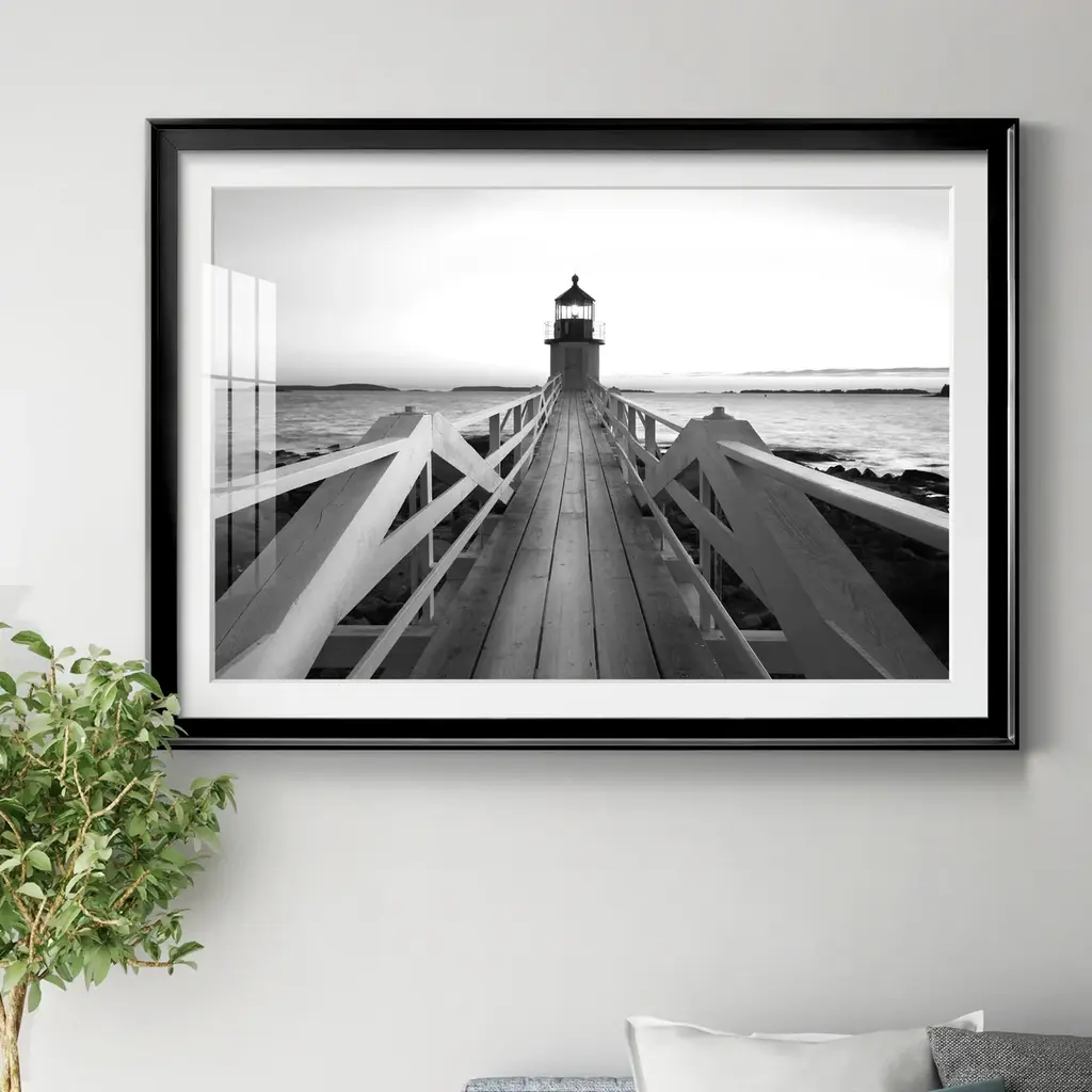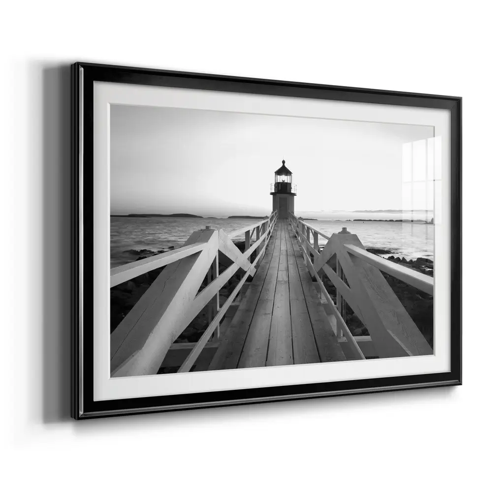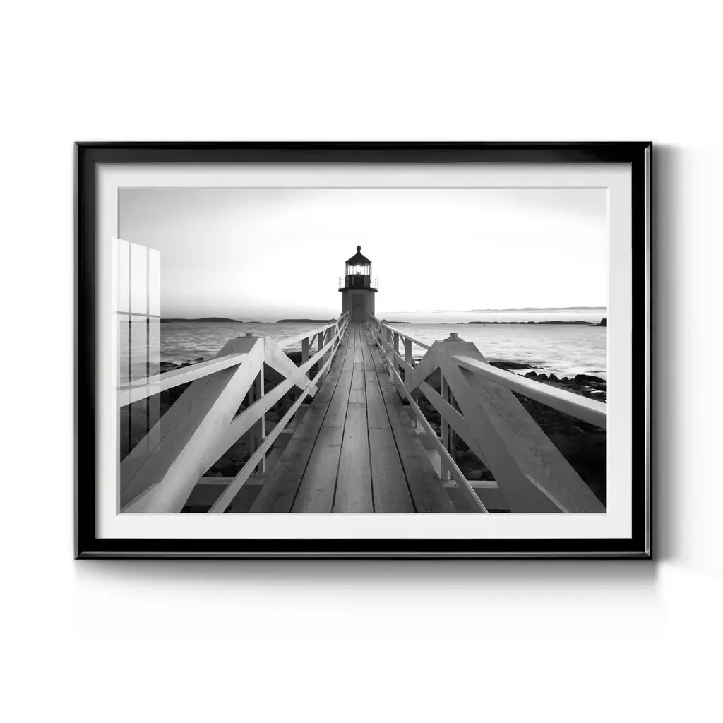 Marshall Point Lighthouse Premium Framed Print - Ready to Hang A Premium Framed Print created to last. Framed in distressed wood and available in an array of sizes and colors Featuring a beveled a solid wood stretcher bar, each piece comes ready to hand 4 SIZES AVAILABLE 30.5''X42.5'' - Overall Size 26.5'X36.5'' - Overall Size 22''x30'' - Overall Size 18''x24'' - Overall Size Each piece is made to order. Each piece comes with hanging hardware. Made in the USA Ready to Hang Giclee Paper Print Acrylic Glass Beveled Matt Board