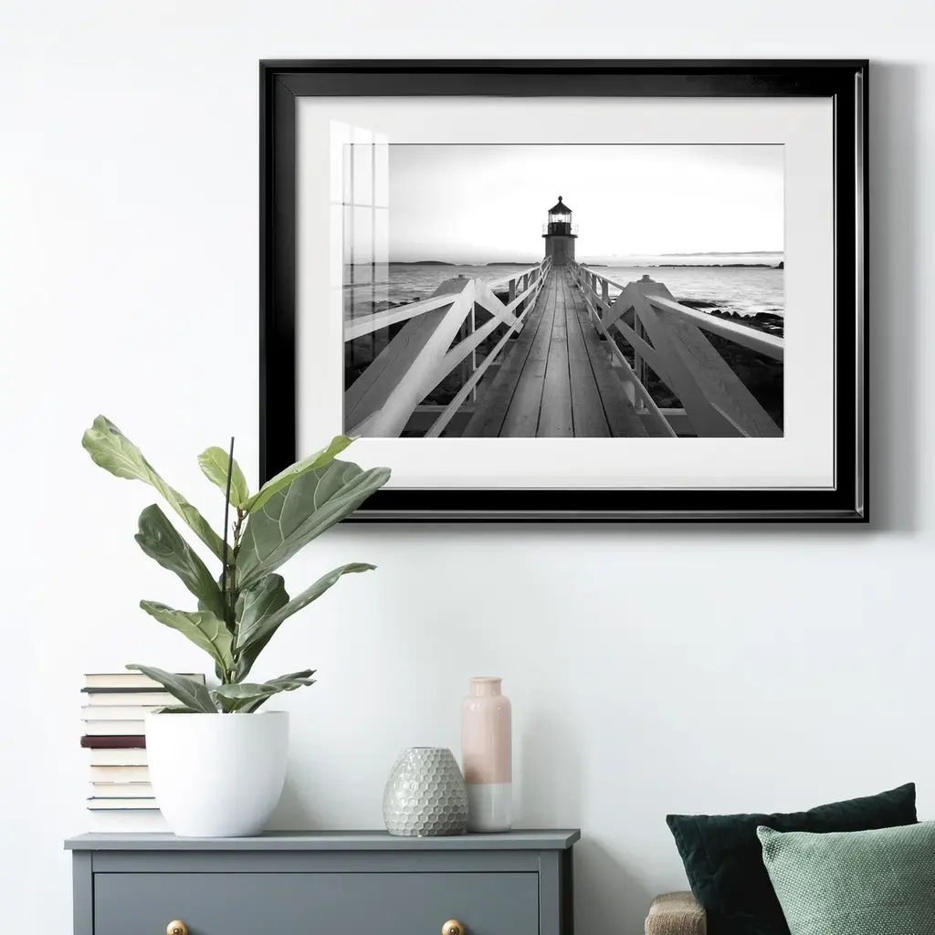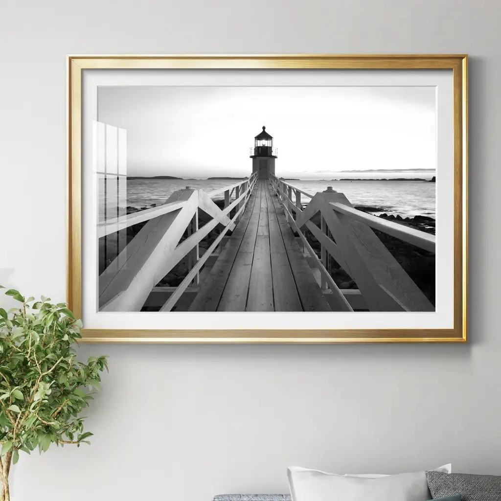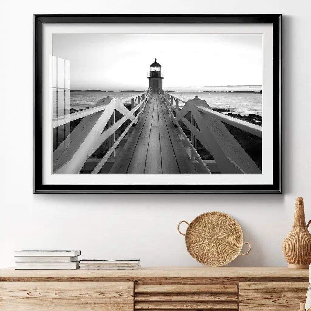 Marshall Point Lighthouse Premium Framed Print - Ready to Hang A Premium Framed Print created to last. Framed in distressed wood and available in an array of sizes and colors Featuring a beveled a solid wood stretcher bar, each piece comes ready to hand 4 SIZES AVAILABLE 30.5''X42.5'' - Overall Size 26.5'X36.5'' - Overall Size 22''x30'' - Overall Size 18''x24'' - Overall Size Each piece is made to order. Each piece comes with hanging hardware. Made in the USA Ready to Hang Giclee Paper Print Acrylic Glass Beveled Matt Board