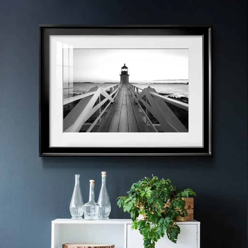Marshall Point Lighthouse Premium Framed Print - Ready to Hang A Premium Framed Print created to last. Framed in distressed wood and available in an array of sizes and colors Featuring a beveled a solid wood stretcher bar, each piece comes ready to hand 4 SIZES AVAILABLE 30.5''X42.5'' - Overall Size 26.5'X36.5'' - Overall Size 22''x30'' - Overall Size 18''x24'' - Overall Size Each piece is made to order. Each piece comes with hanging hardware. Made in the USA Ready to Hang Giclee Paper Print Acrylic Glass Beveled Matt Board
