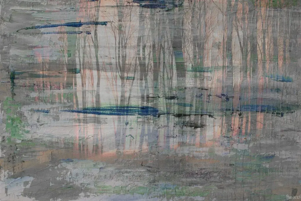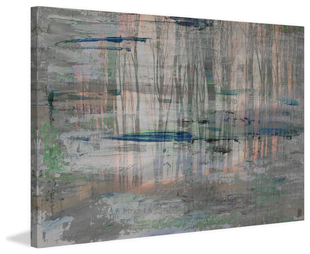 Striking and unique, the "Marshy Reflection" Painting Print on Wrapped Canvas by Parvez Taj will bring your walls to life. Printed on canvas, this 45 inch wide by 30 inch tall contemporary artwork will make a statement in any living room, dining room, or bedroom.- Fine art canvas print by Parvez Taj- Professionally hand stretched- Gallery wrapped in sustainable, non-warping Wood- Arrives ready to hang- Made in the USA- Includes a certificate of authenticity- Artist signature on the front