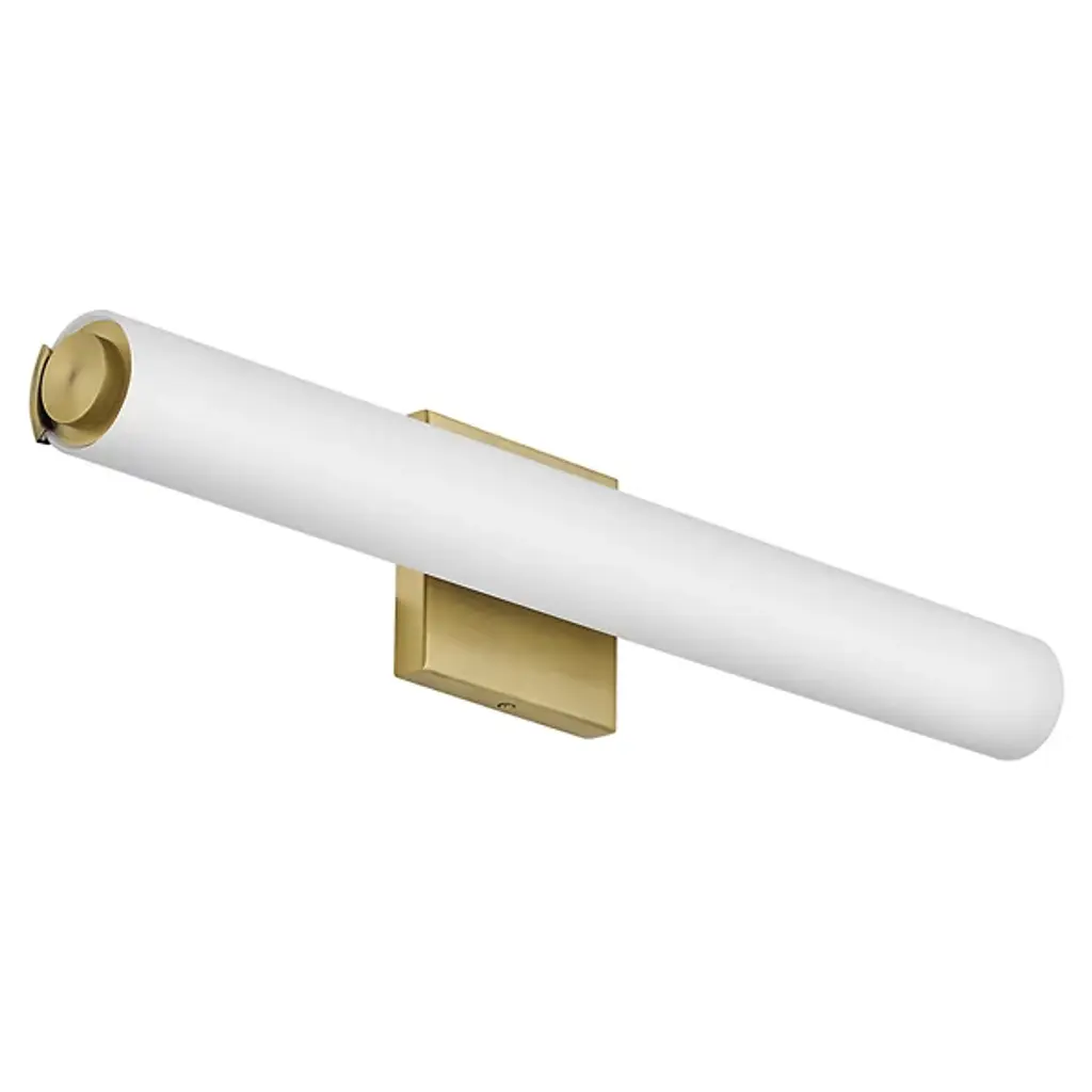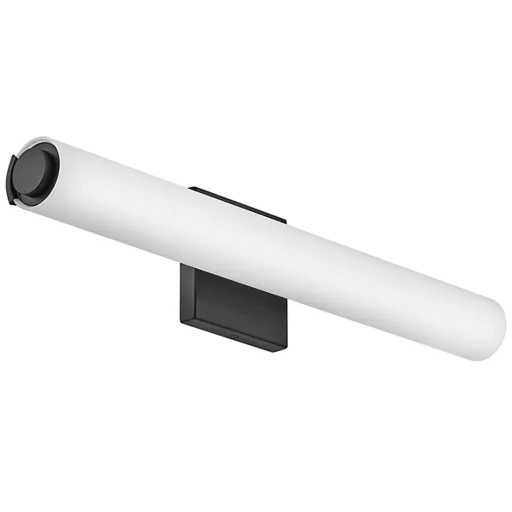 The Marti LED Vanity Light from Lark gives one’s mirrors greater definition through its uniform glow and sharp geometric outline. The piece’s elementary shapes make it a versatile visual suited for the modern or contemporary space. It can be appreciated in tight quarters thanks to a low-profile square backplate. This metal backplate’s bold finish gives an edge to the etched white glass in front. The cylindrical glass shade softens the bright LED array into an even glow that’s restful on the eyes.