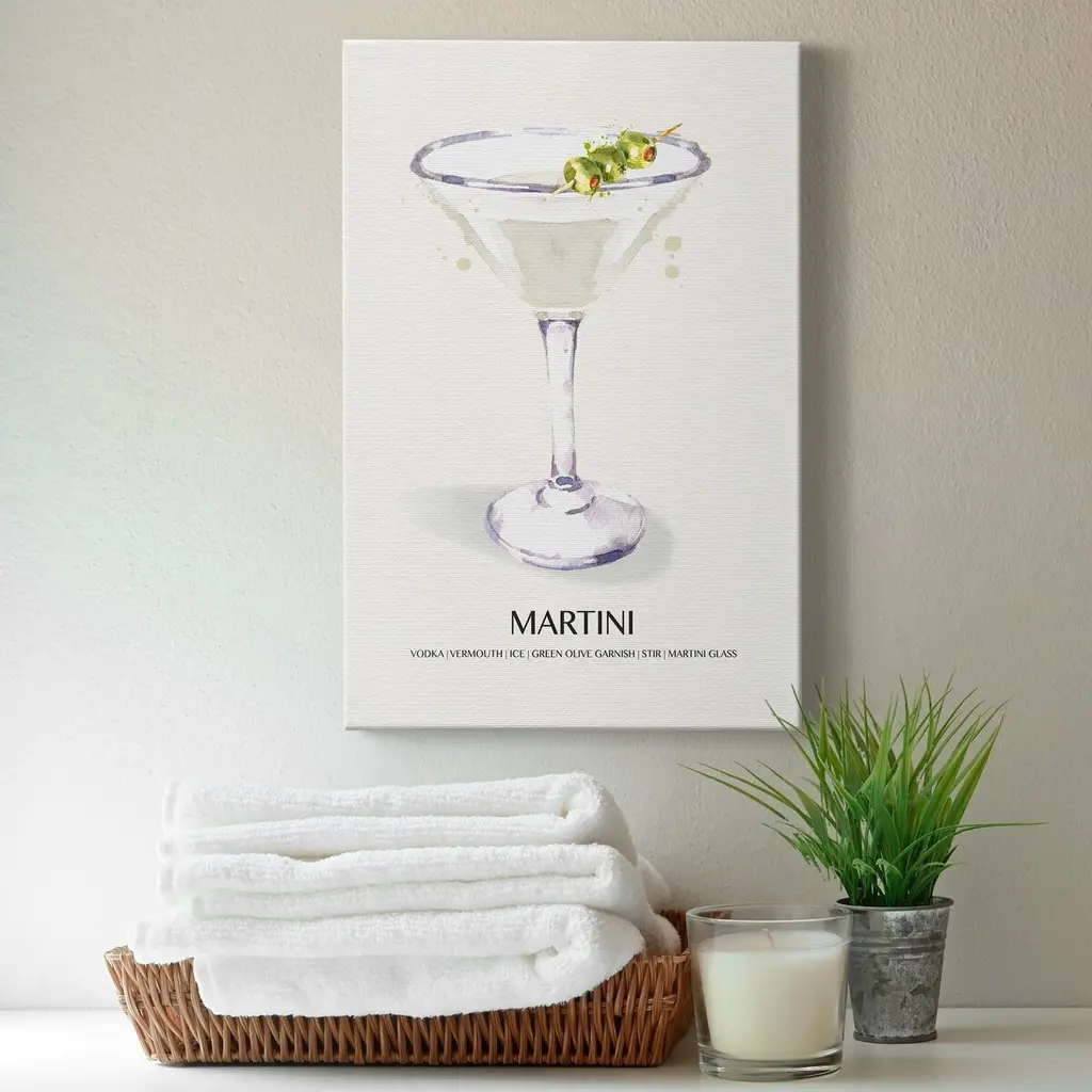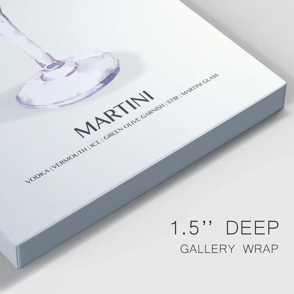 Martini Premium Gallery Wrapped Canvas - Ready to Hang A premium hand stretched gallery wrapped canvas print created to last. Featuring a beveled a solid wood stretcher bar, each piece comes ready to hand 5 SIZES AVAILABLE 8''X12'' - Overall Size 16'X20'' - Overall Size 24''x32'' - Overall Size 30''x40'' - Overall Size 36''x48'' - Overall Size Each piece is made to order. Built to Last Each piece comes ready to hang Solid wood stretcher Fade and Water resistant Made domestically