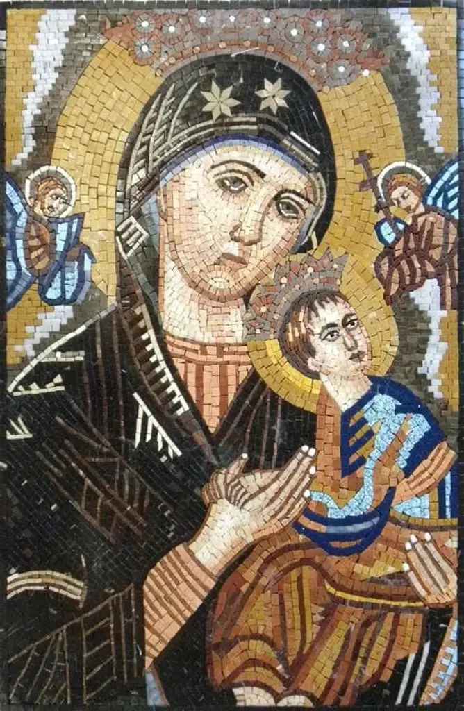 Mary And Jesus Iconic Mosaic Reproduction - 60cm X 90cm (24" X 35") / Without Frame